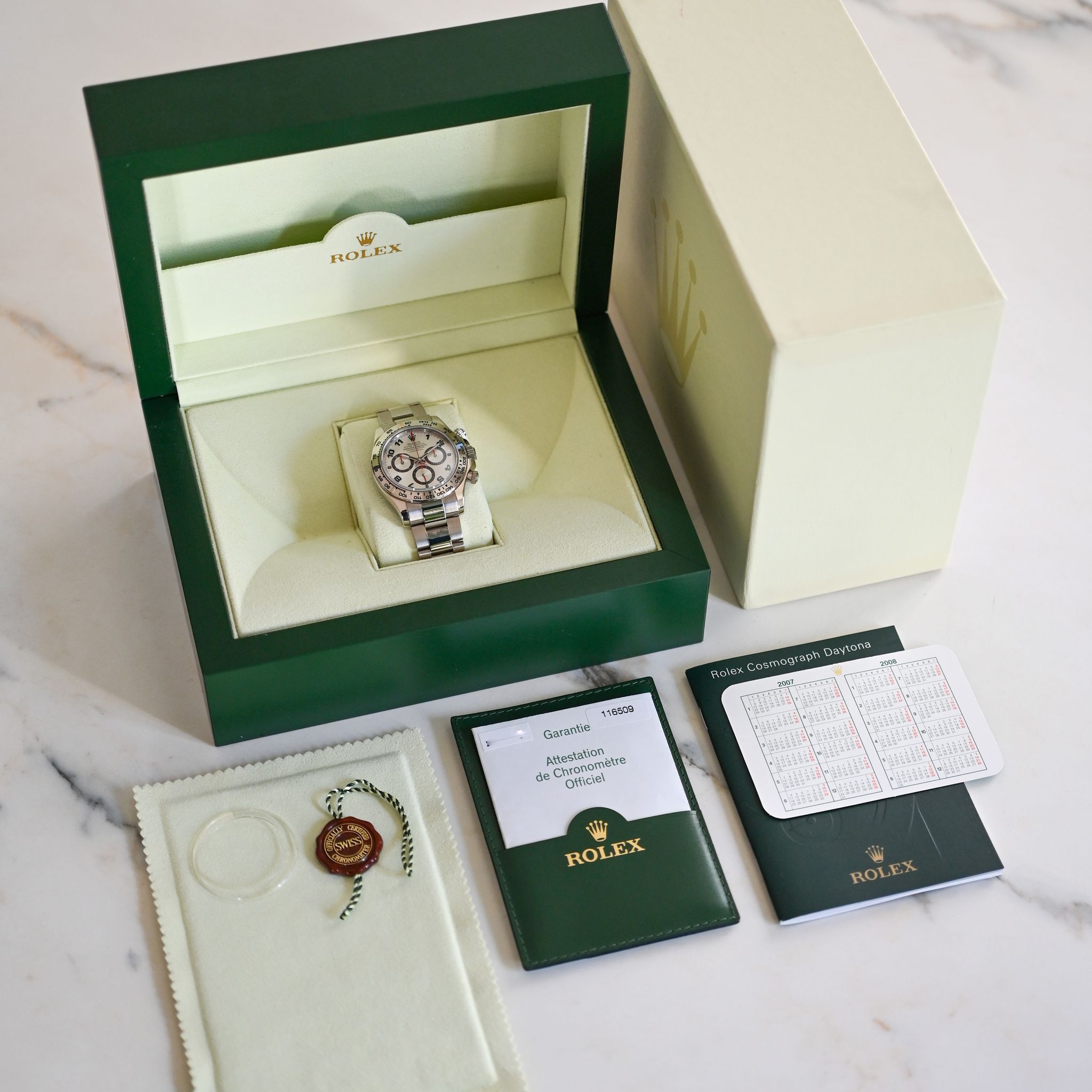 This watch is delivered with its box, outer-box, original Rolex warranty dated 2007 (code France), manuals, calendar, tag and bezel protector.