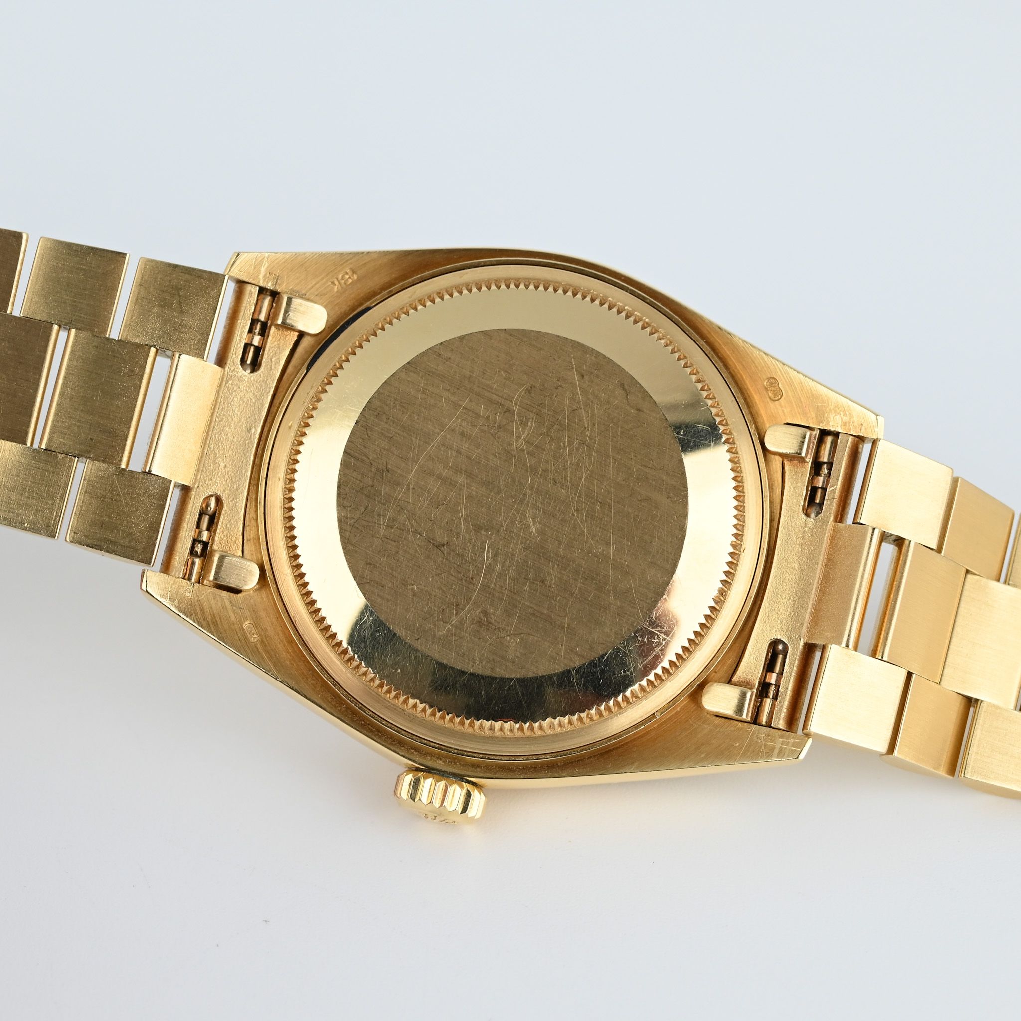 With a diameter of 36mm, reference 18028 was produced between 1978 and 1989. This model, with its smooth bezel, is particularly rare. A wide variety of dial configurations were offered at the time, including some in semi-precious stone or wood, but all were now flat, unlike the domed dials present on the older reference 1803. Others were equipped with highly colored lacquered dials, the famous “Stella” dials.