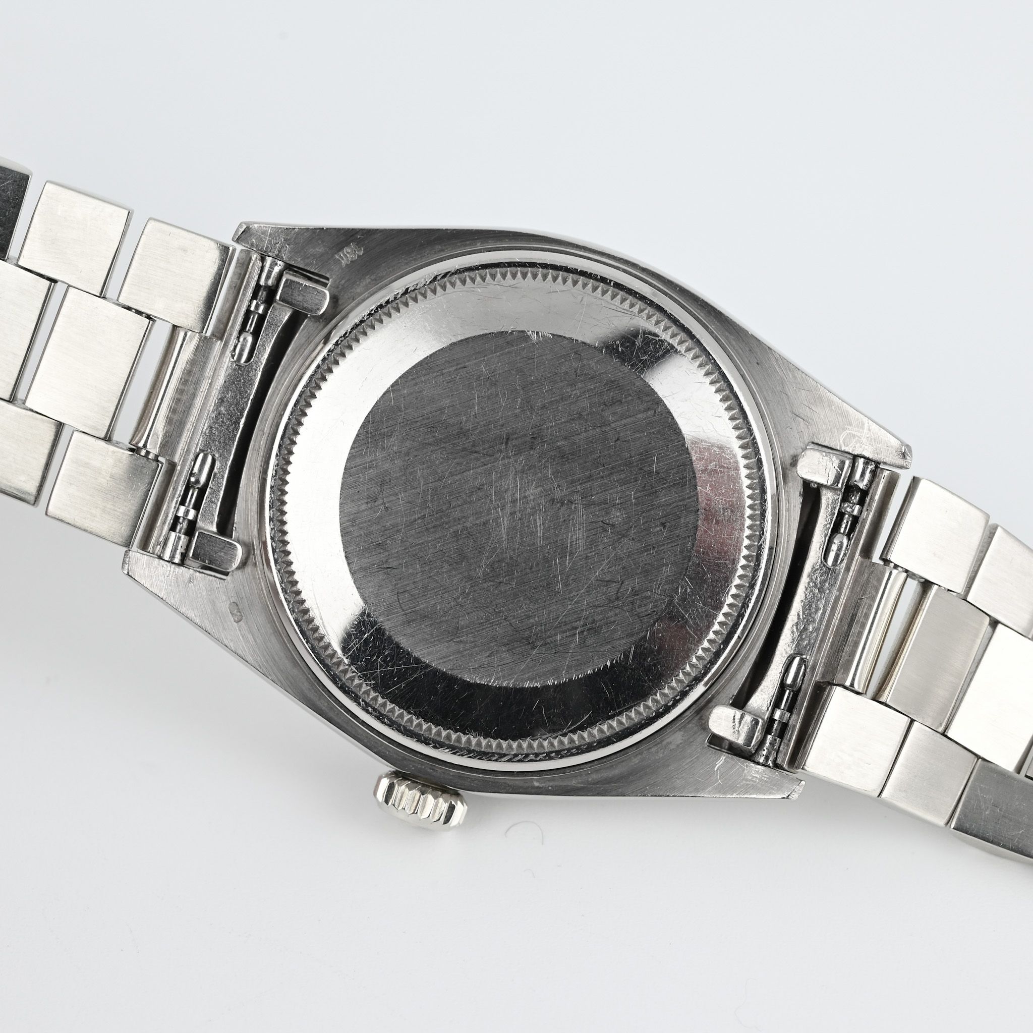 The Rolex caliber 1555 has a power reserve of around 42 hours and is not equipped with the crown-operated quick-date system, a feature that appears with the following reference 18038 and caliber 3055.