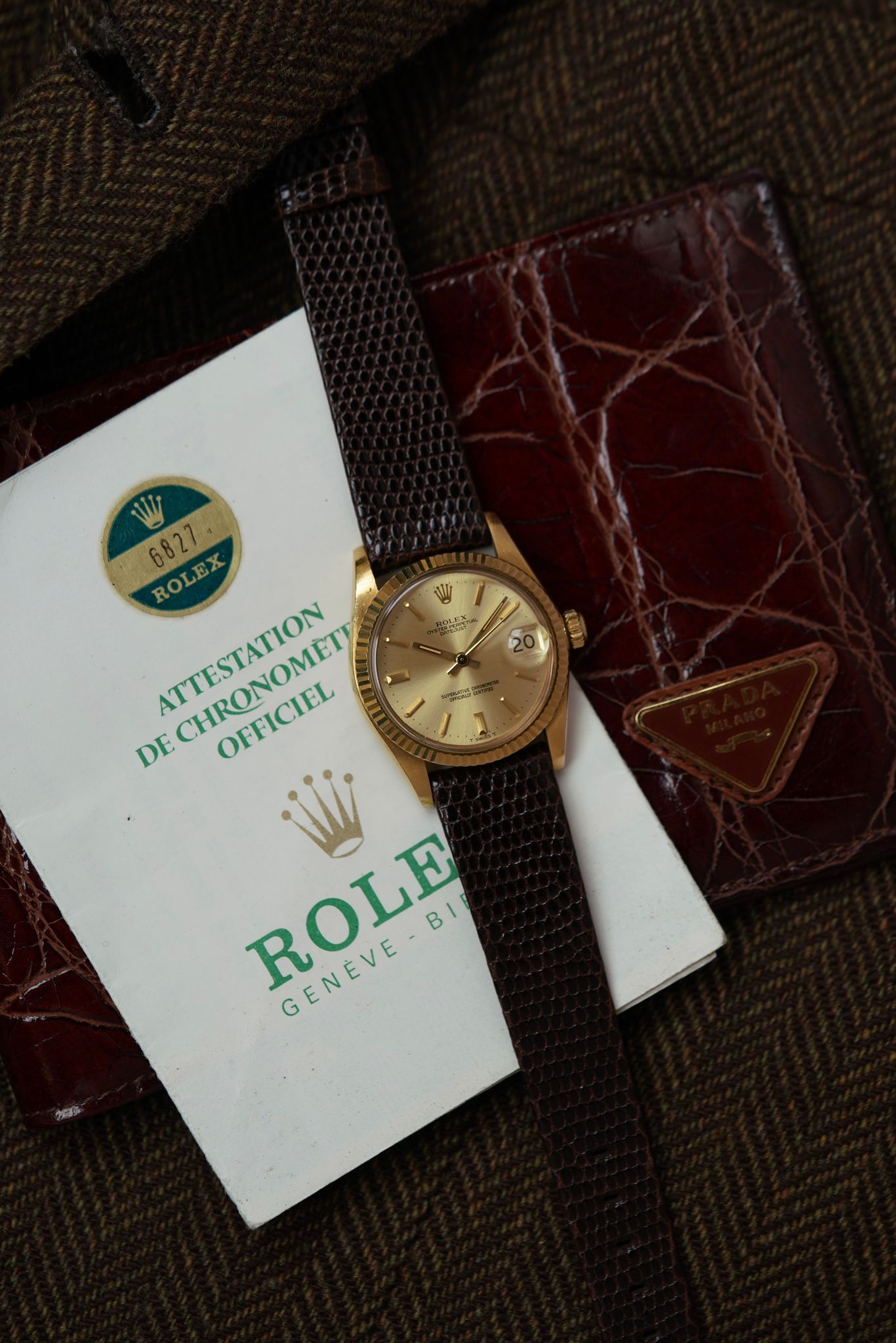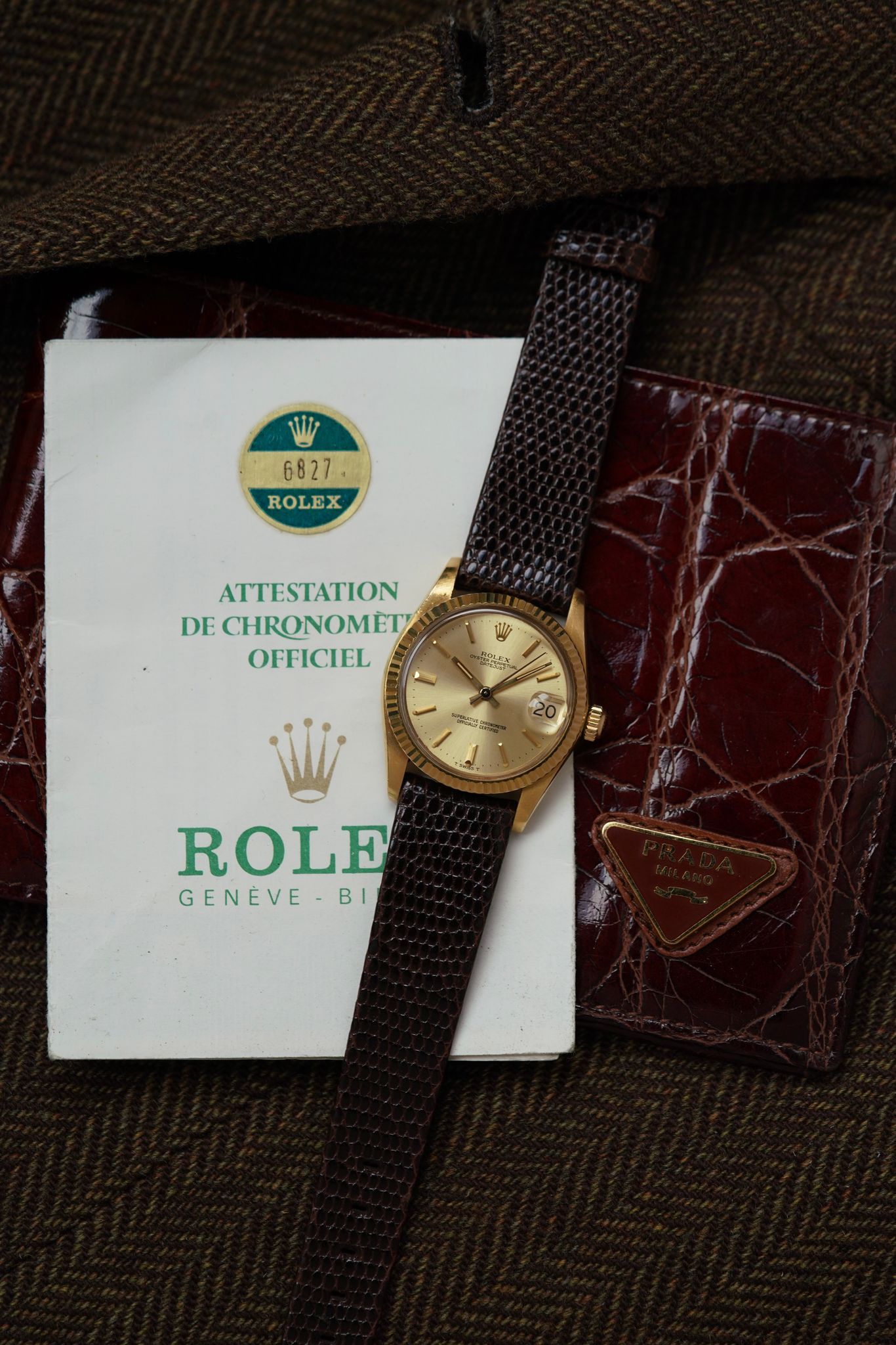 A truly special find: this 31mm Rolex Datejust ref. 6827 in solid 18k yellow gold. Midsize, but with full presence — this piece remains in literal Like New Old Stock condition, showing virtually no signs of wear.