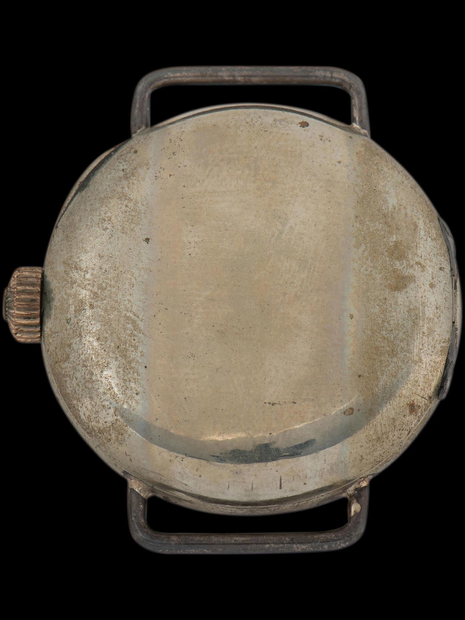 For obvious reasons, not many of these watches exist today, with the Zeniths being the most abundant and Omegas like this one being among the rarest. And this specific one is in really amazing condition, especially considering it's over one hundred years old. While the original white numerals have aged to a lovely pumpkin color, the white enamel dial is still stark white and the to-spec oxidized nickel case is strong and clean. This is an amazing piece with a really unique, interesting military provenance.