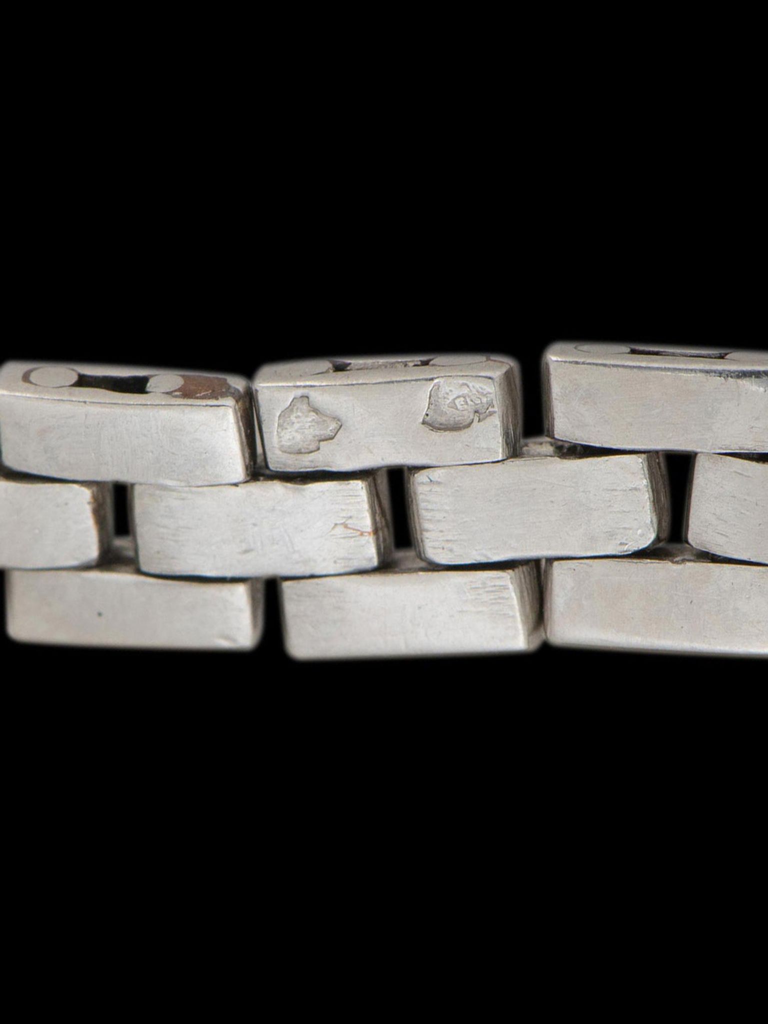 Demure, unique, and downright beautiful, this Cartier Duo-Plan from the 1930s is one of the smallest watches ever made, using the smallest movement ever created, the cal. 101. Cast is platinum and covered in French “dog head” hallmarks, this watch is effectively more bracelet than watch with its integrated design and symmetrical aesthetic with the backwind crown.