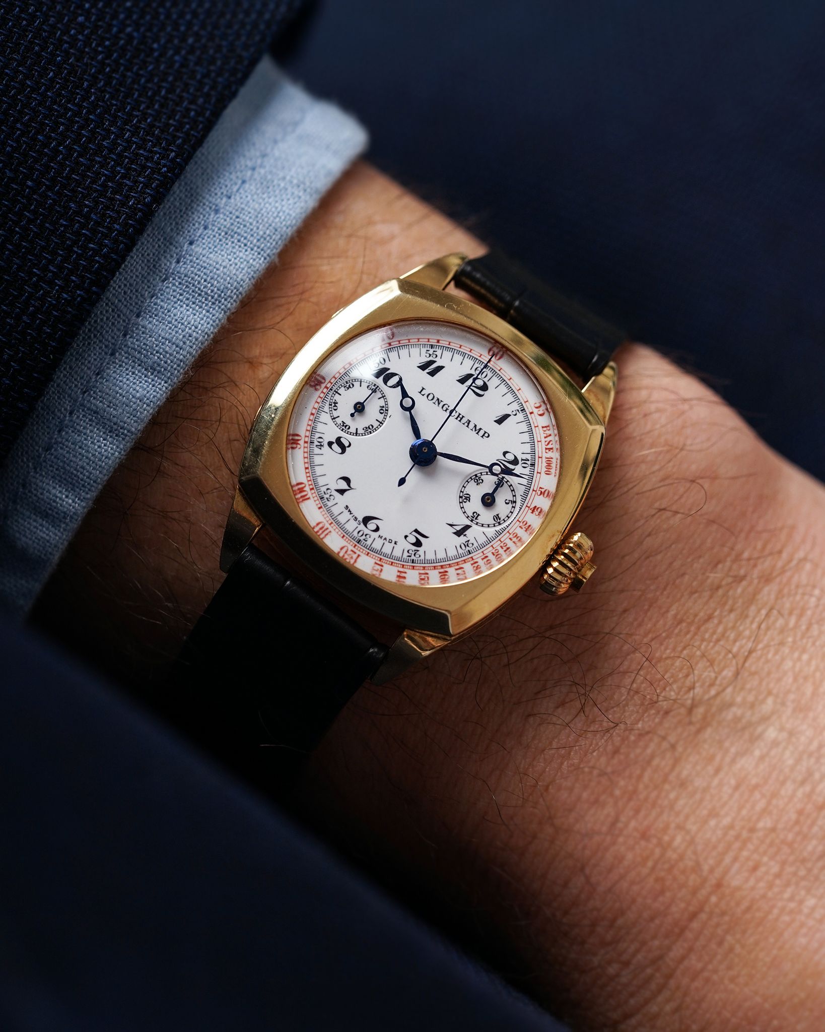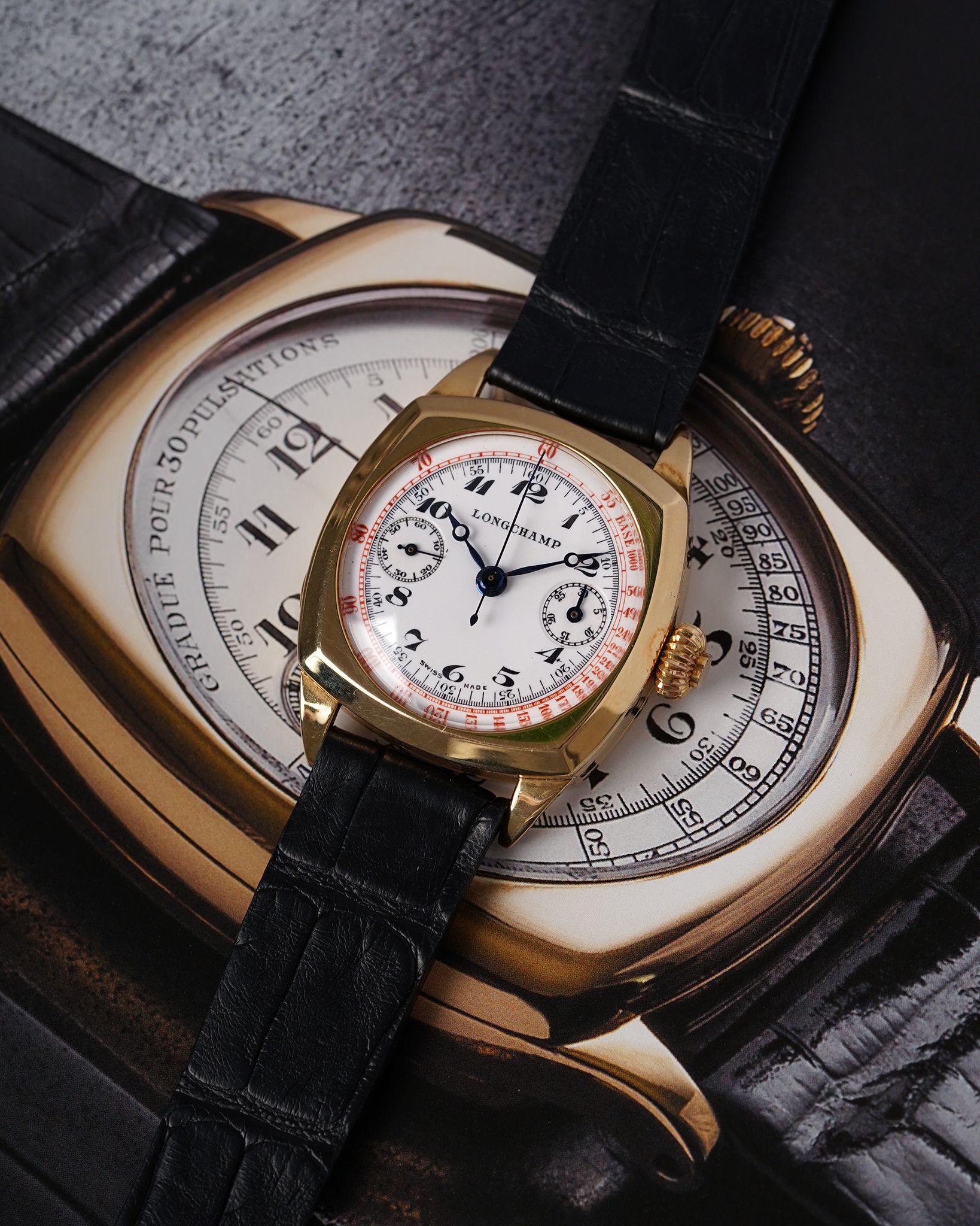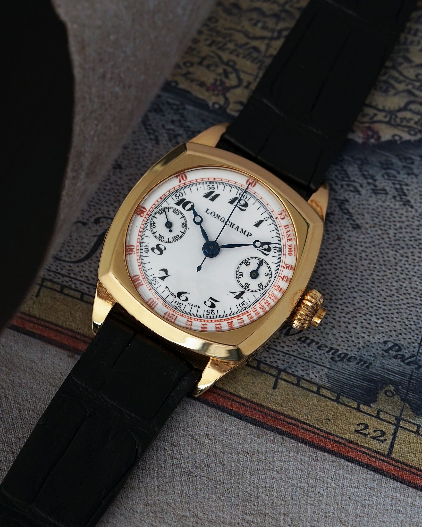 Other - 1930s Cushion Case Longchamp chronograph | Enamel Dial | Breguet Numbers