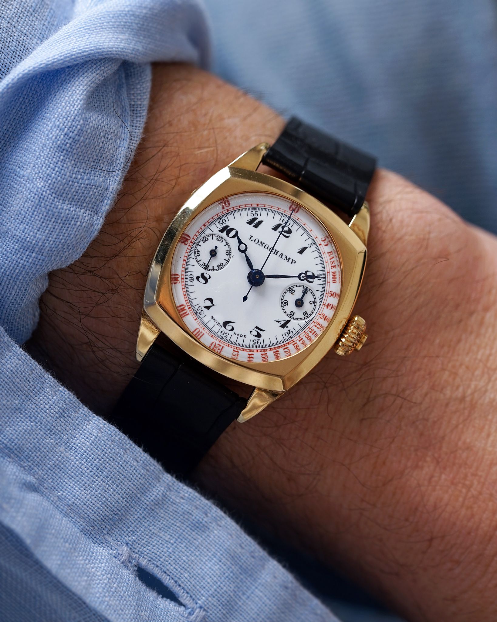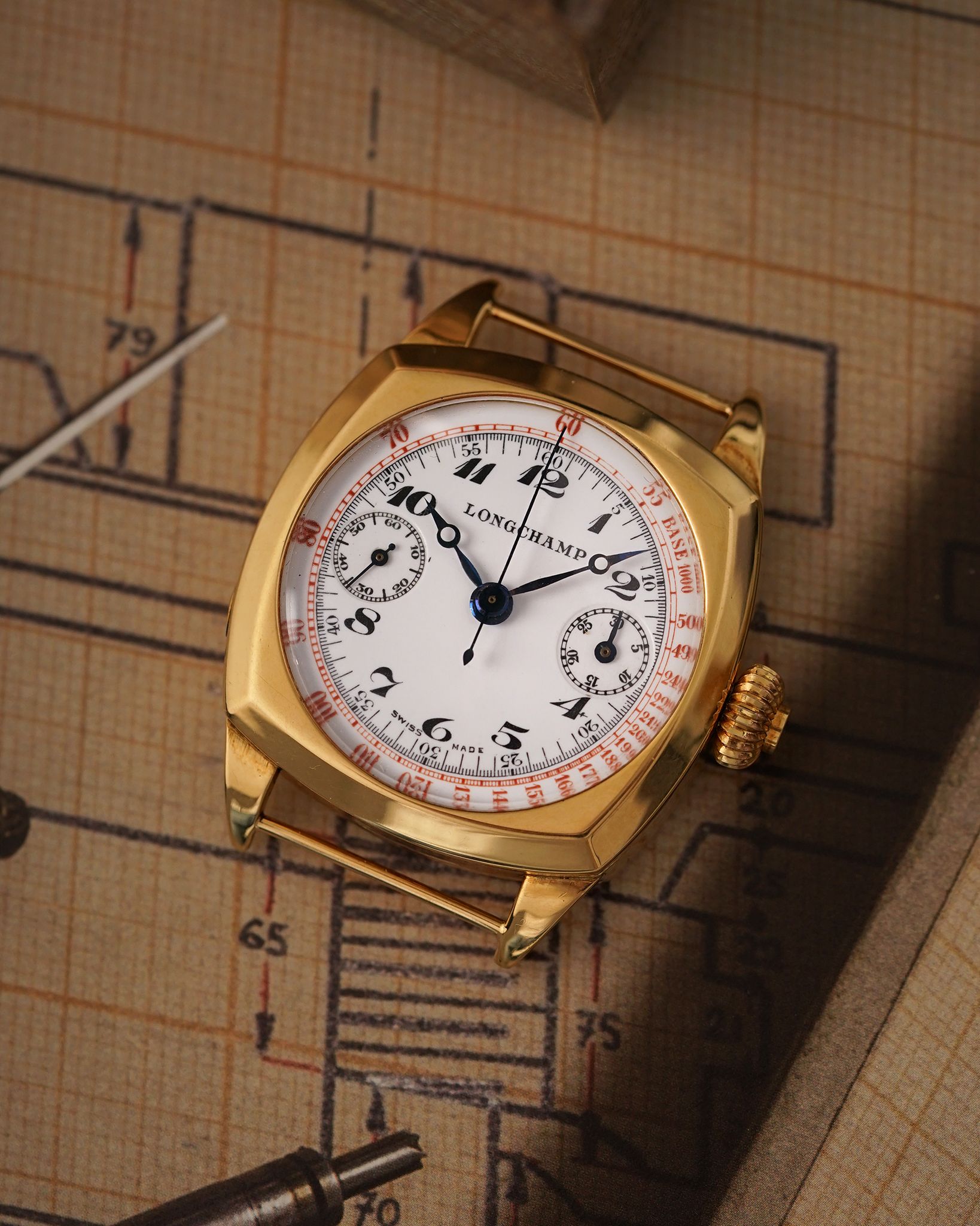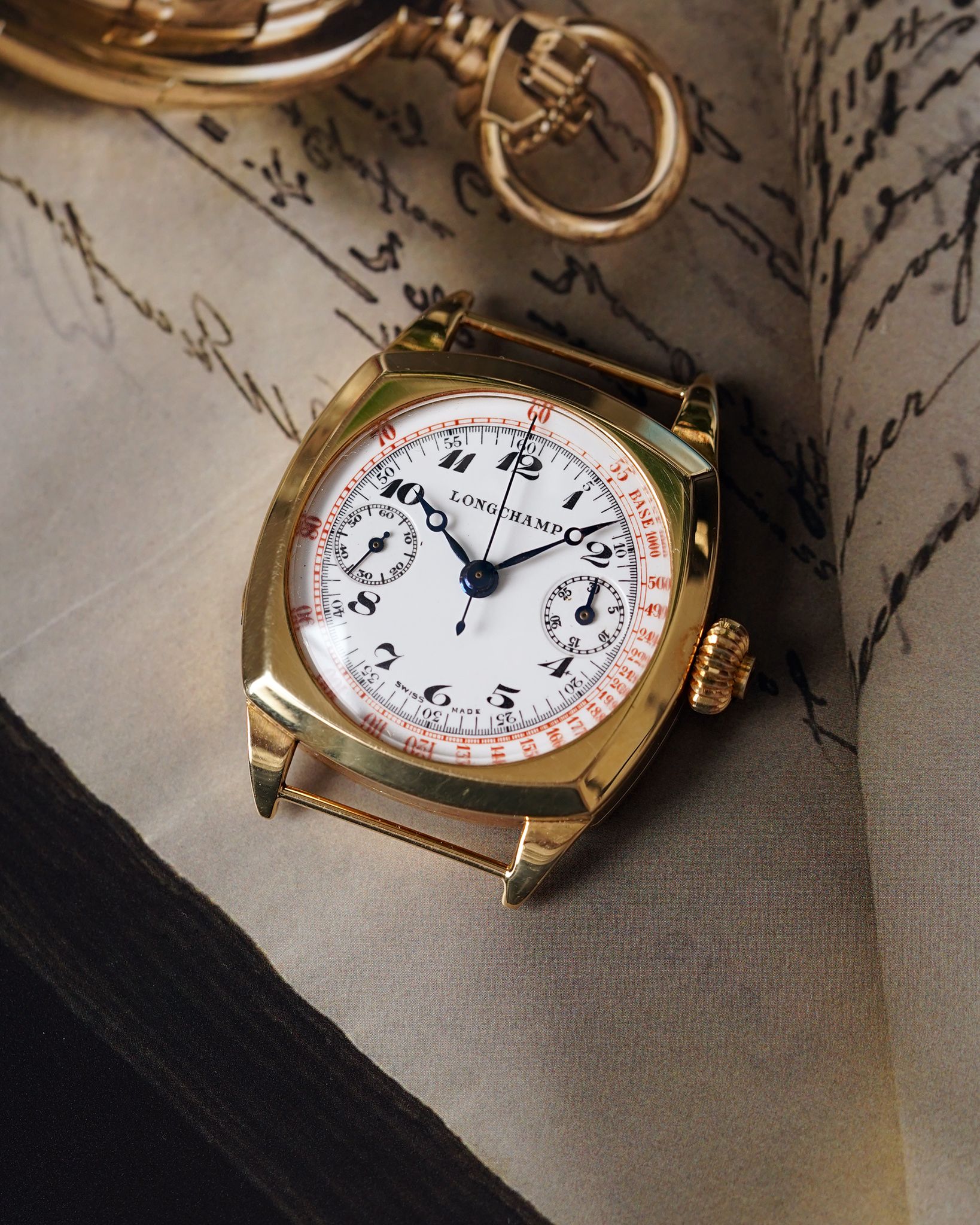 Other - 1930s Cushion Case Longchamp chronograph | Enamel Dial | Breguet Numbers