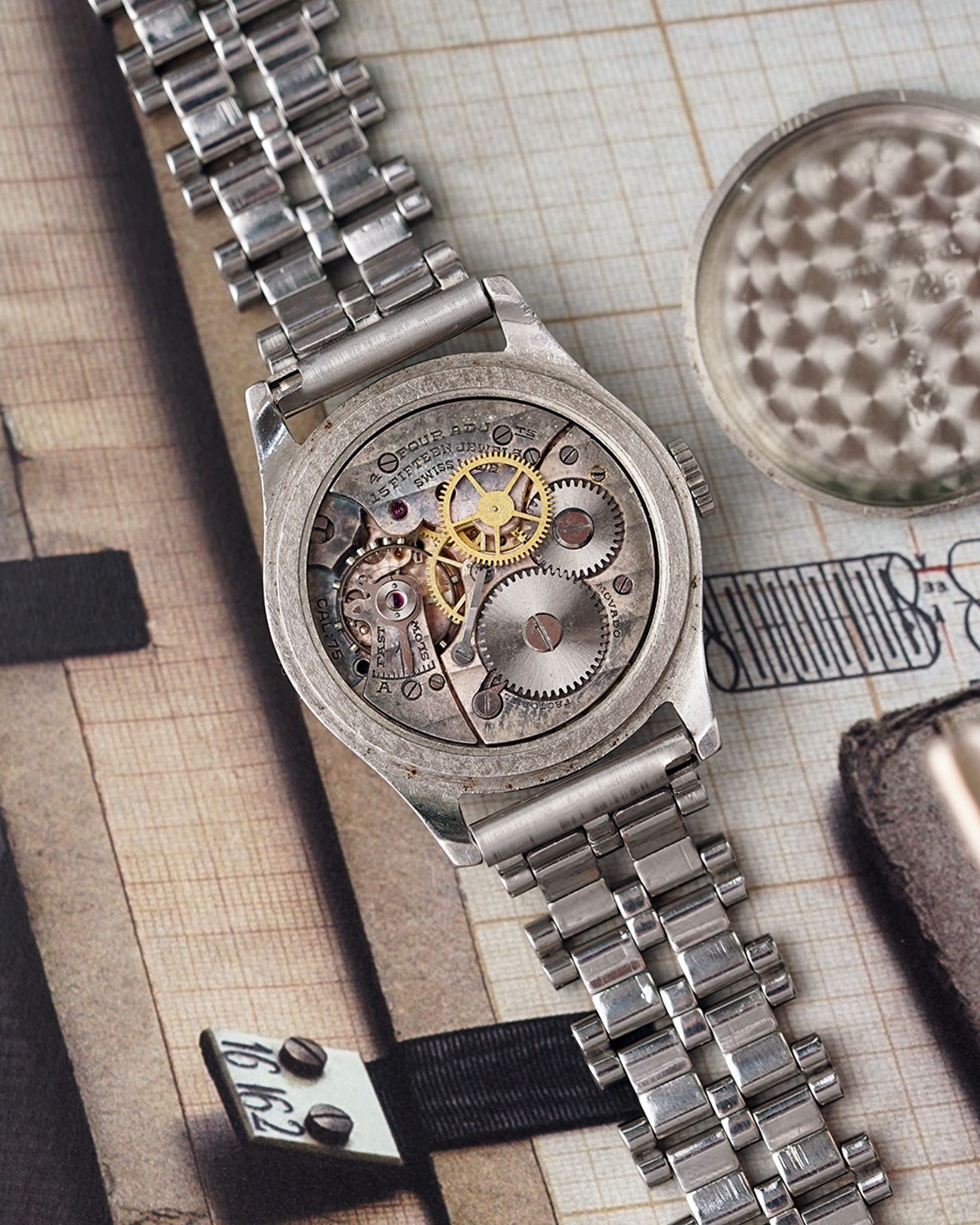 This piece bears a striking resemblance to the Patek Calatrava 96, yet it’s even rarer. The gilt dial is truly captivating in person, shifting shades beautifully under different lighting.