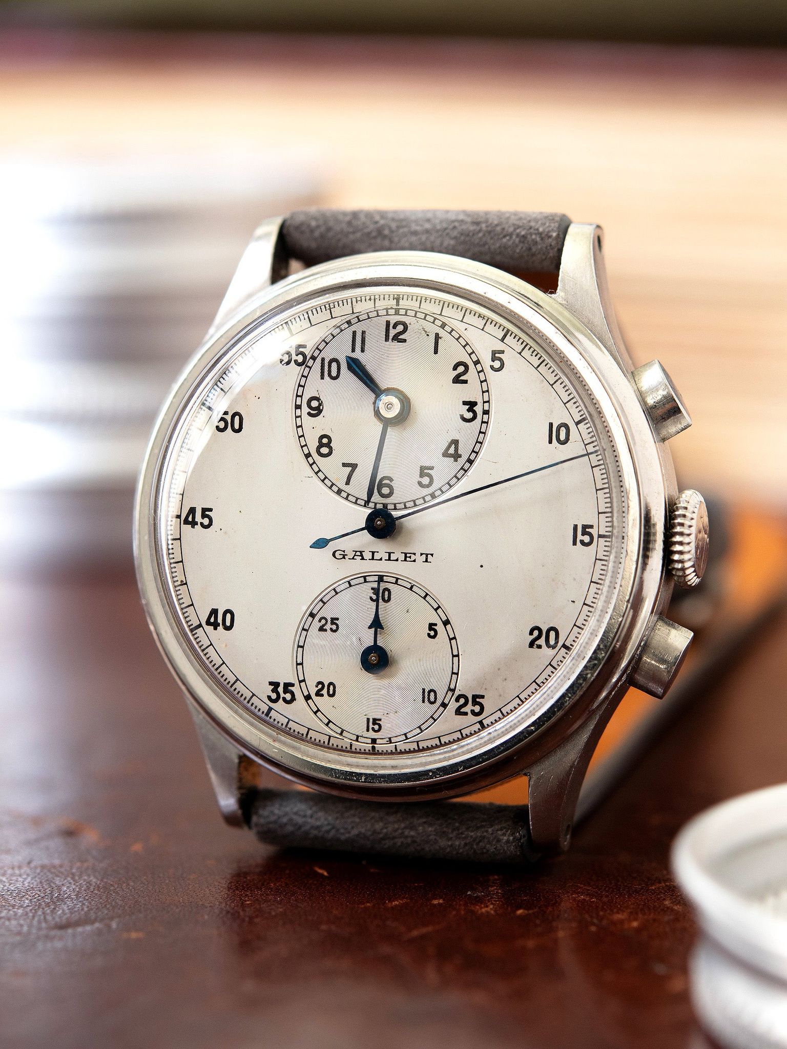 The name Gallet & Co. has been synonymous with horology for 550 years, dating to the year 1466 when founded by Humbertus Gallet. Gallet & Co. introduced some of the most useful wristwatch complications of today including the first wrist-worn chronograph, regatta timer, and GMT chronograph. Gallet today remains well respected among vintage collectors and appreciated for its fine attention to detail and wonderfully executed wristwatches.
