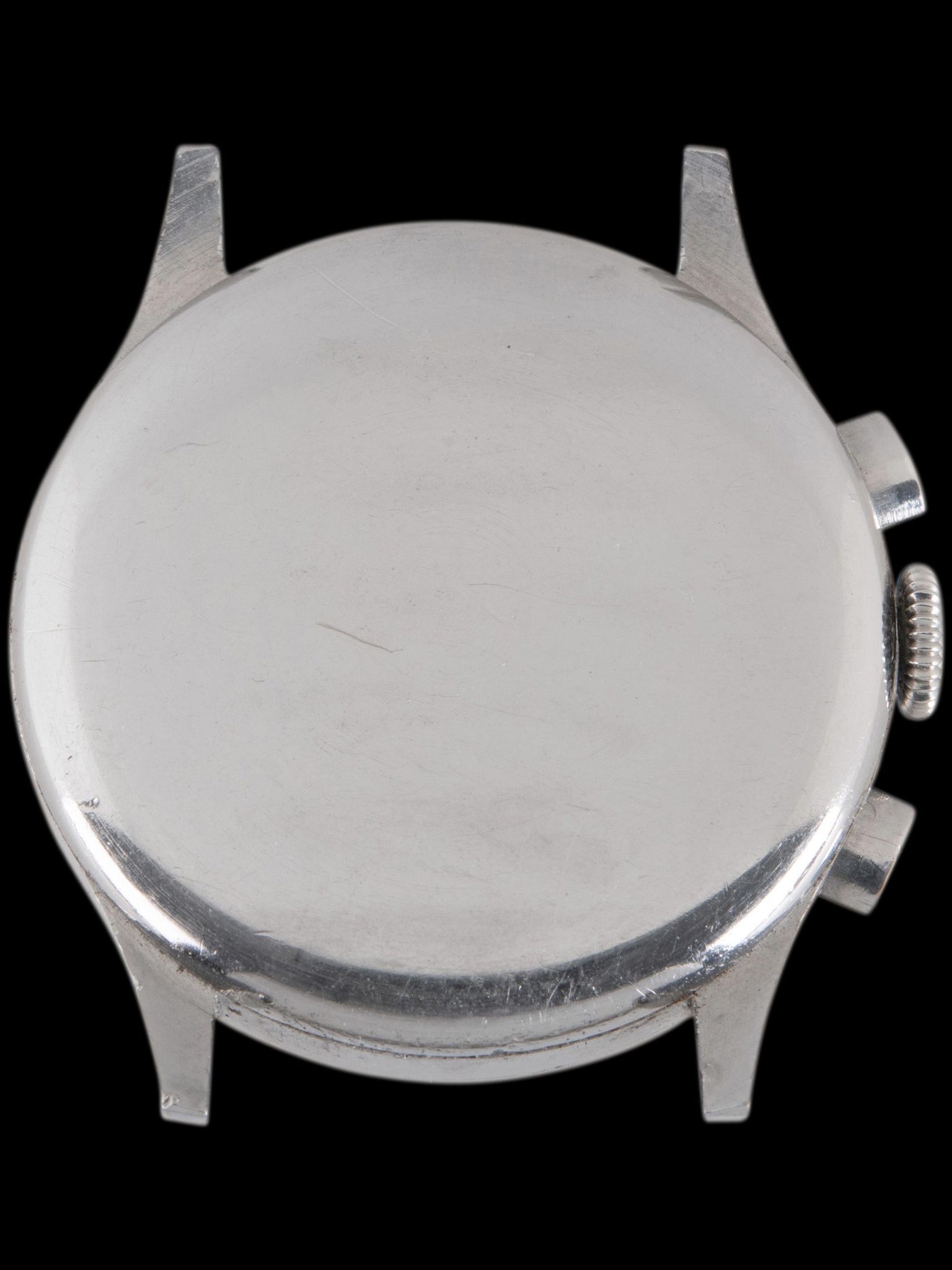 The case is in incredibly well-preserved and original condition, showing no notable evidence of previous polishing and the orignial finishing remains crisp throughout while minimal signs of honest use are present. The case retains its original flat pushers, and the crown also appears to be original to the watch. The case back exhibits very gentle wear which is expected for the age of the watch.