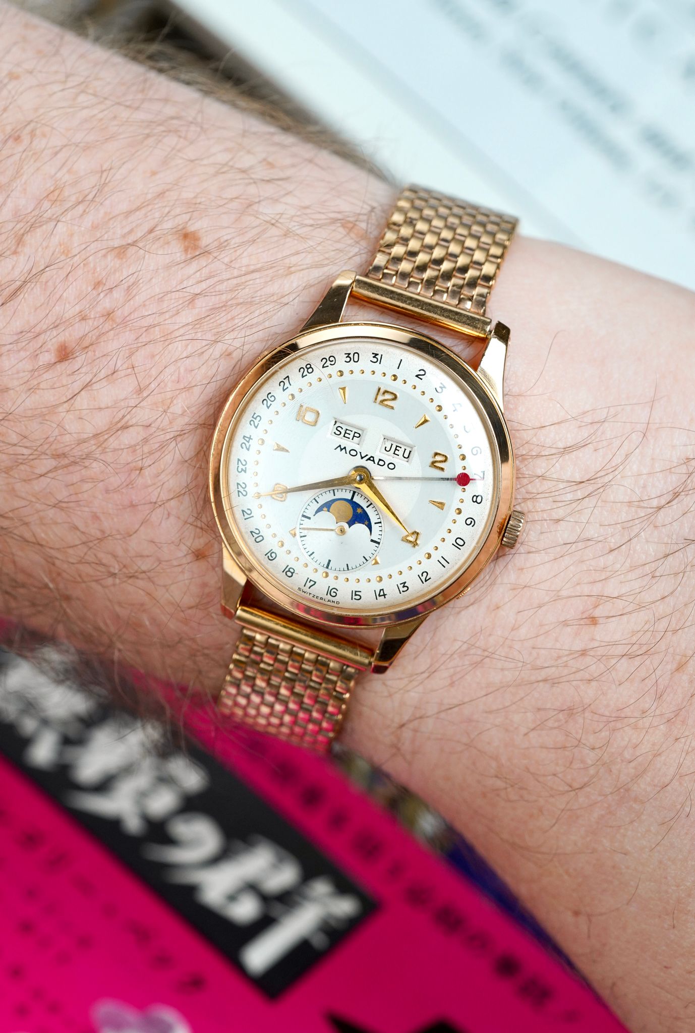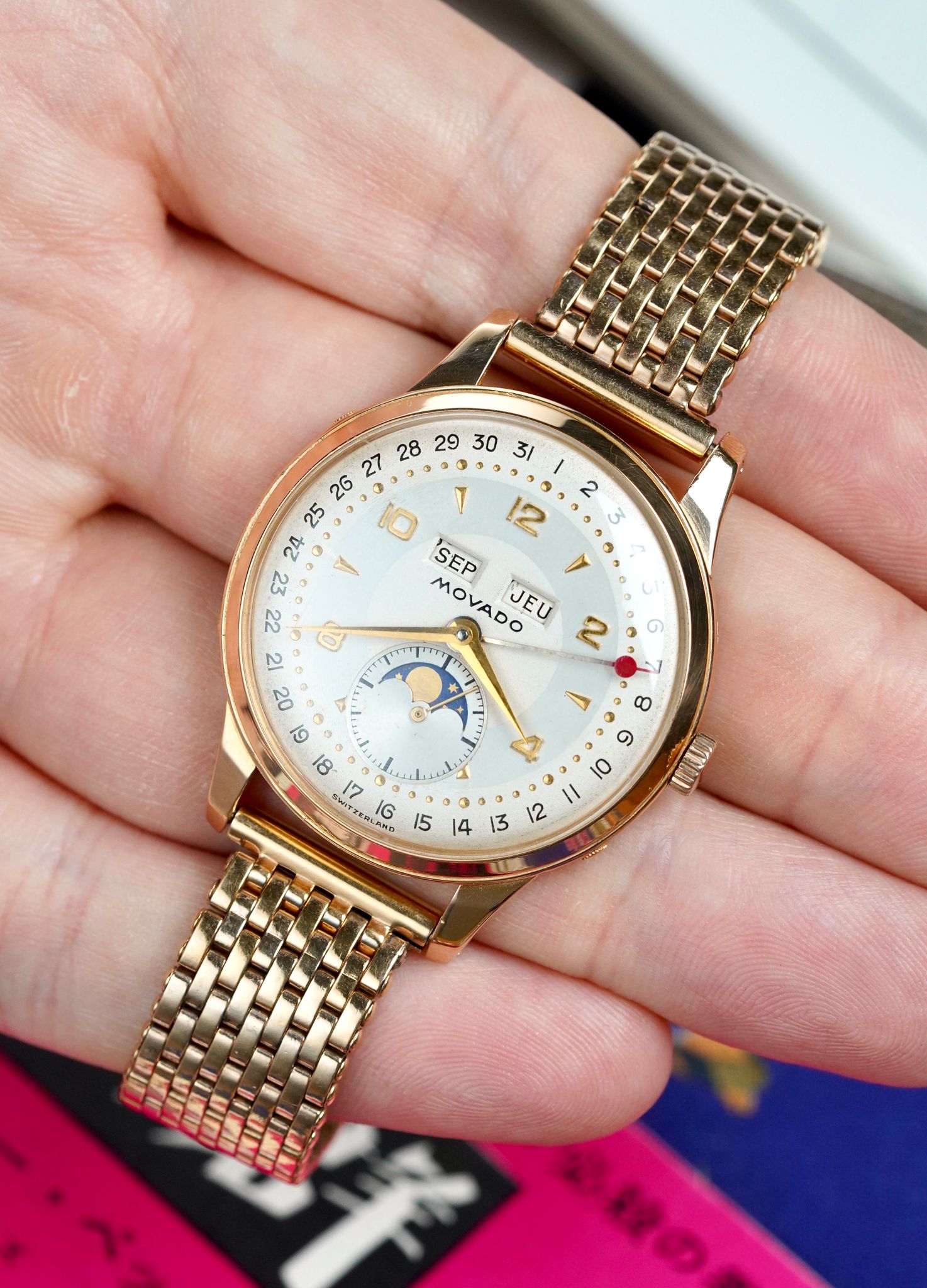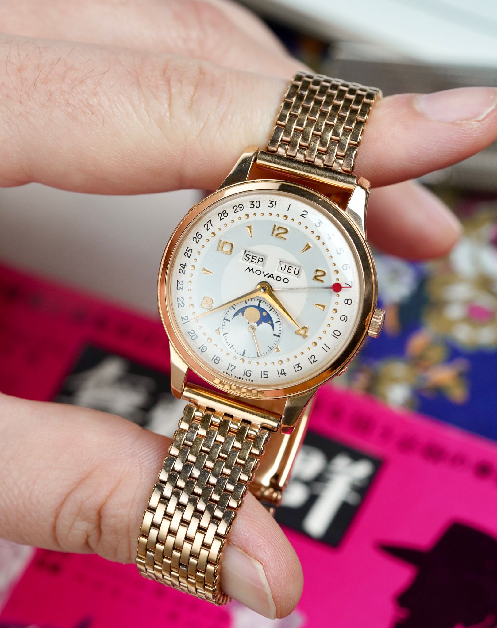 Vintage Movado from the 30s-60s is a treasure trove. The brand was responsible for some of the most classically inspired designs of the era including Chronographs powered by the famed M95 and M90 movements and calendars of vast arrays of dial layouts and case materials. This example is as such.