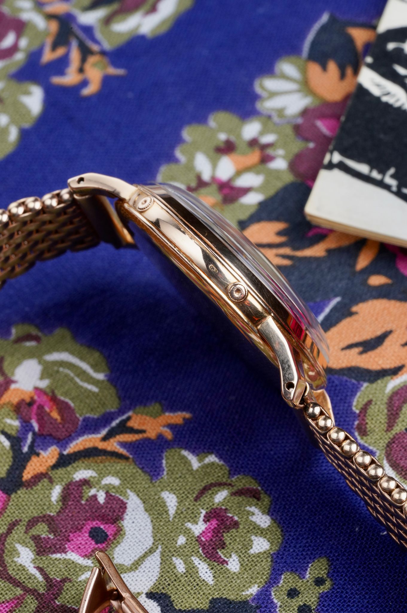 A triple calendar with moonphase is one of the most sought after iterations of this complication but put that inside a 34mm solid 18K rose gold case and we are looking at a rare bird of variables. Paired on a period appropriate Kreisler beads of rice, this watch is straight from the 1940s.