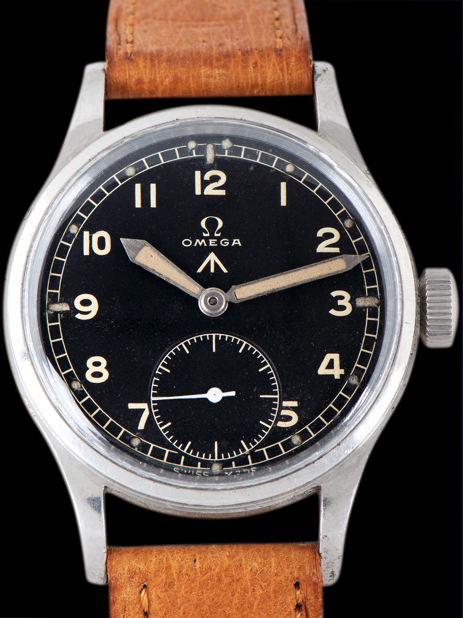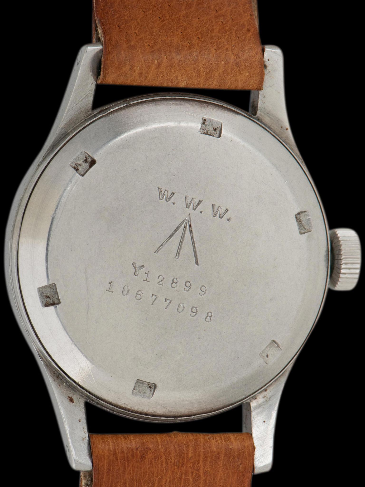 The arrow seen on the dial which is regularly seen on military watches marks the watch as "crown property"; the British monarch's sovereign public estate which was considered neither government property nor part of the monarch's private estate.