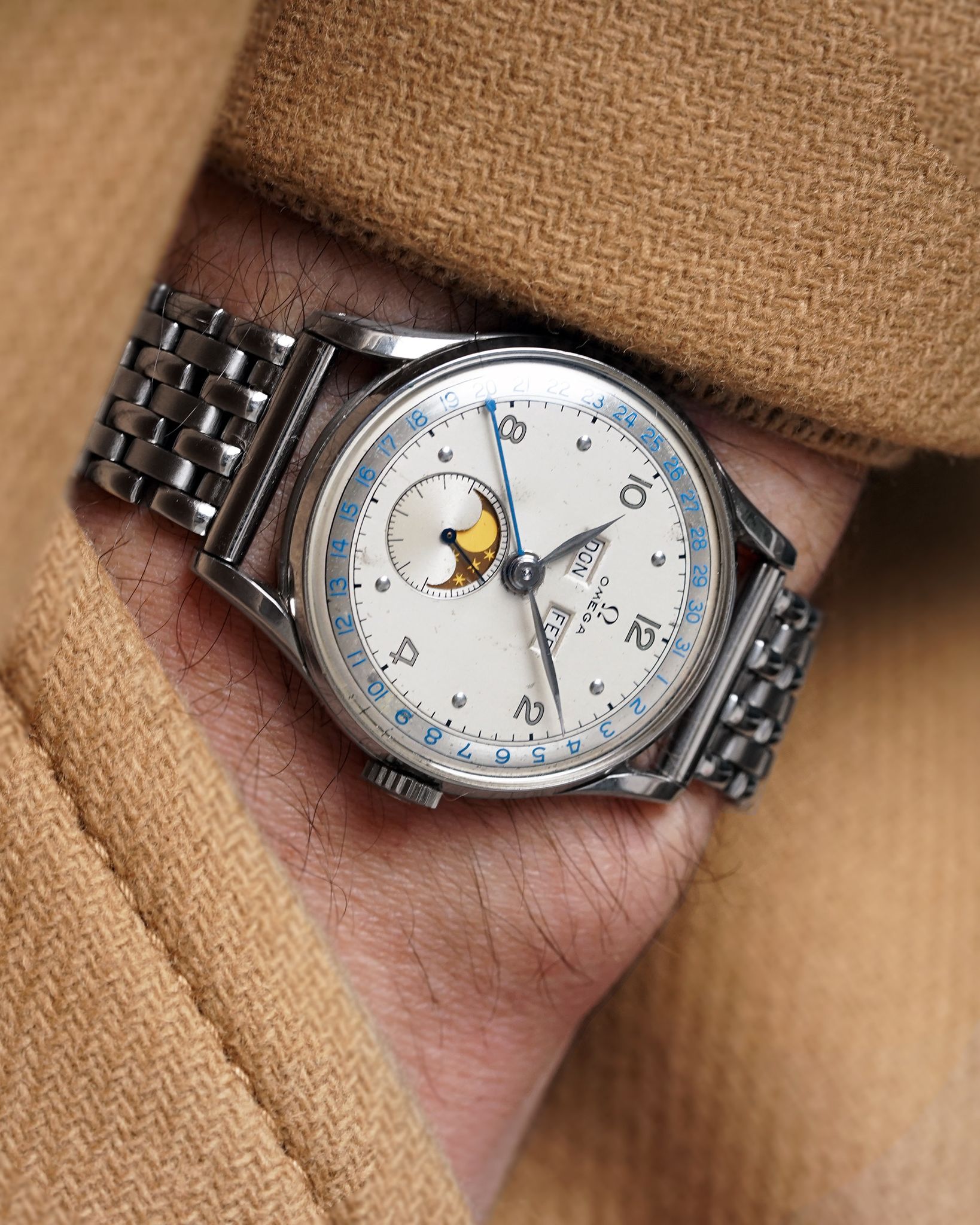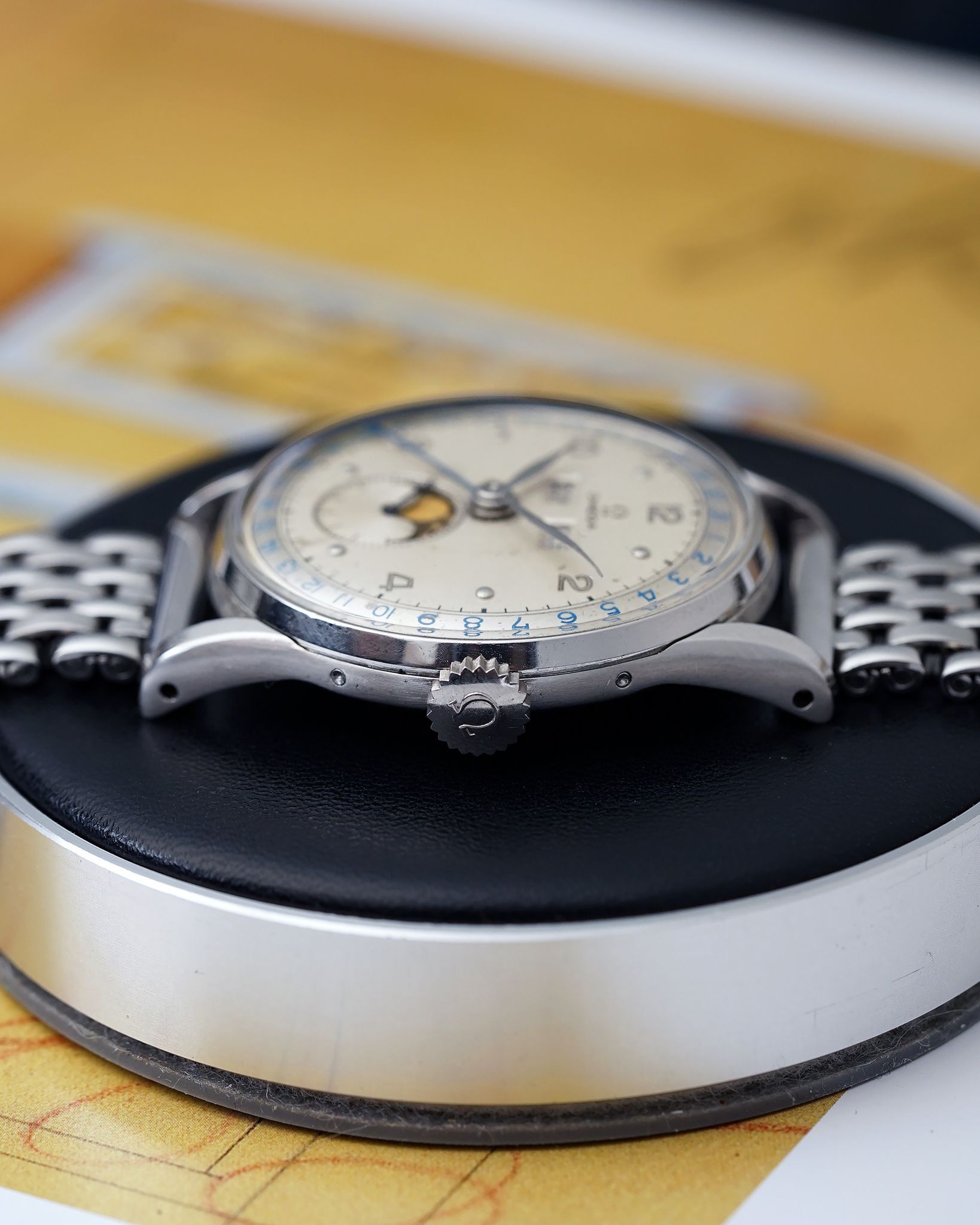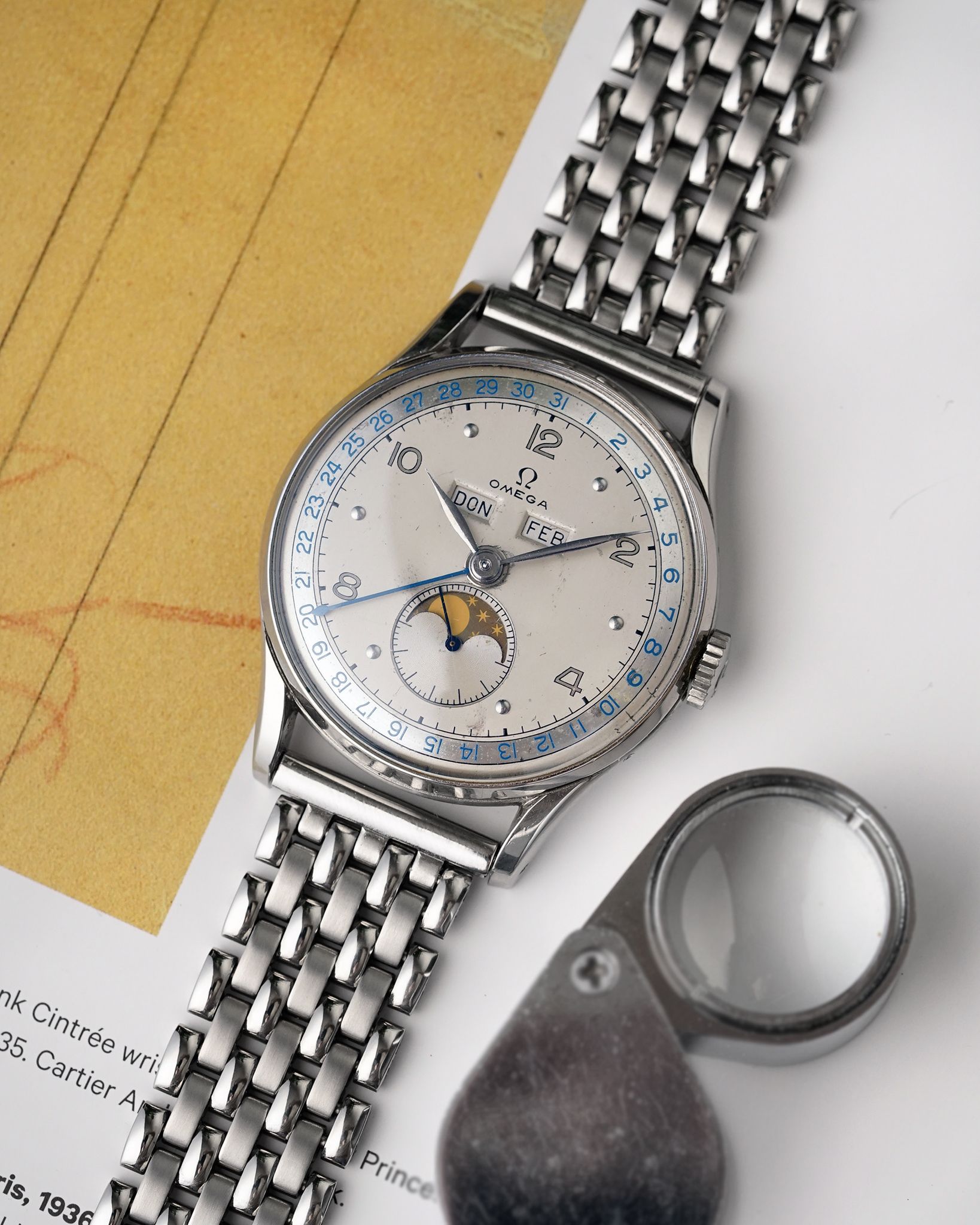 The most beautiful triple calendar with moonphase Omega ever produced, period. As the brand’s first of its kind, this all-steel masterpiece is simply breathtaking. Most examples have been restored due to moisture damage over the years, making it increasingly rare to find one in untouched, original condition like this exceptional piece.