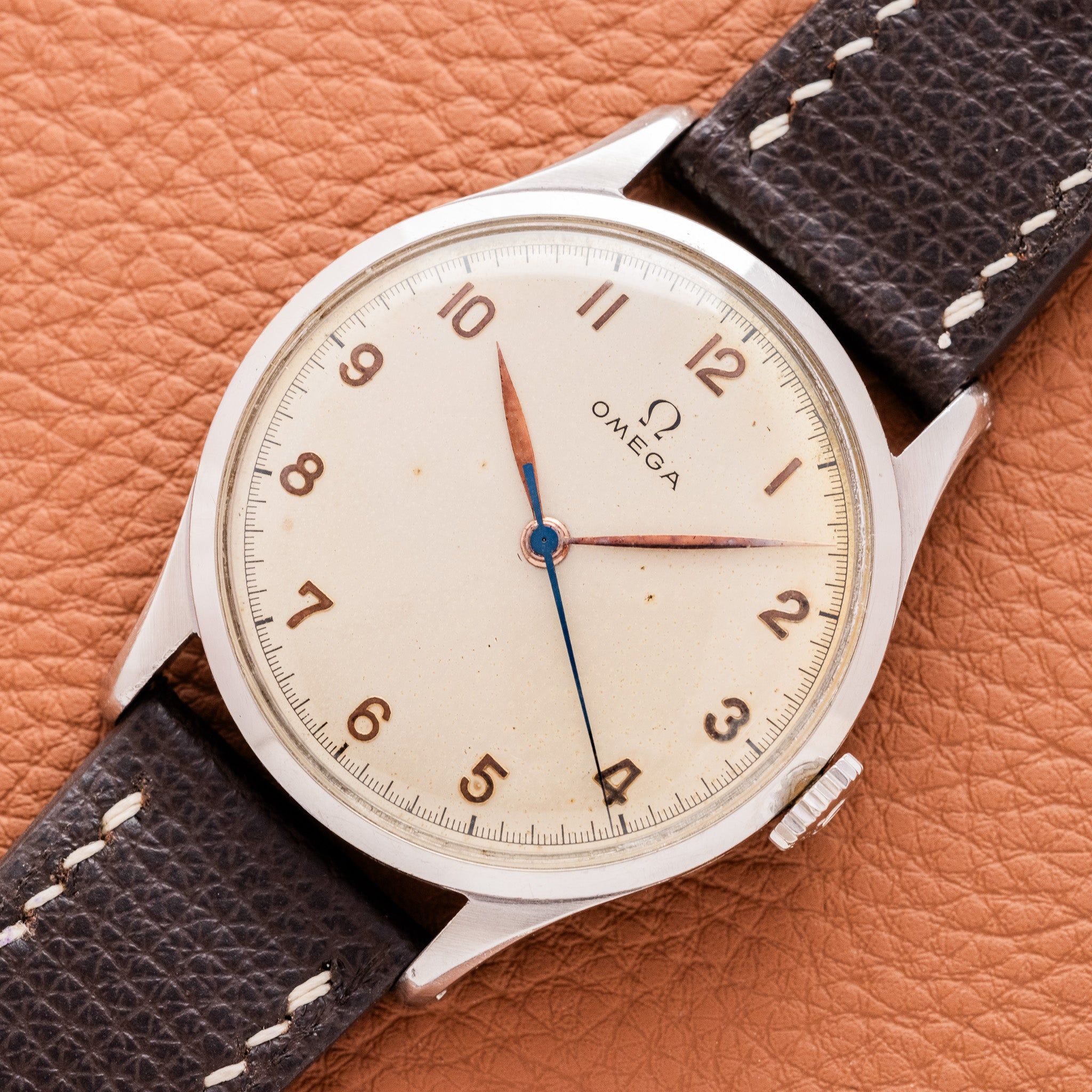 Case: The case is a super rare 38mm size from 1947. It is unpolished and you can still see the original chamfers.