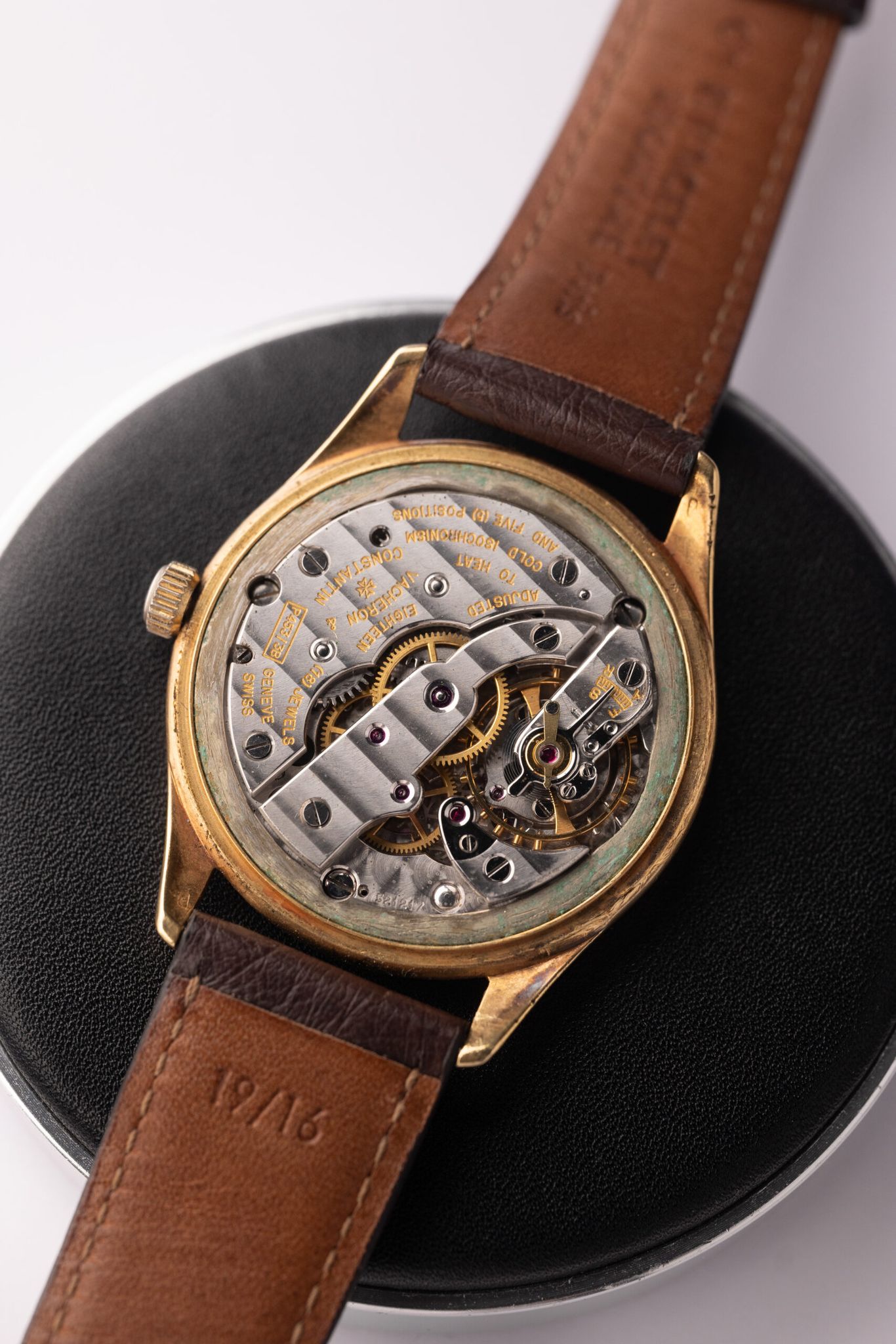 18k Gold, 36mms of Rose – where does one begin with Vacheron’s 4600? 1950’s Jubilee is peak Constantin, it doesn’t get better. This Jubilee’s case has oxidized with time and will continue to personalize with wear. The crown has been replaced previously and keeps time though winds rough. If you’re thinking about purchasing this watch, we recommend a service at some point.