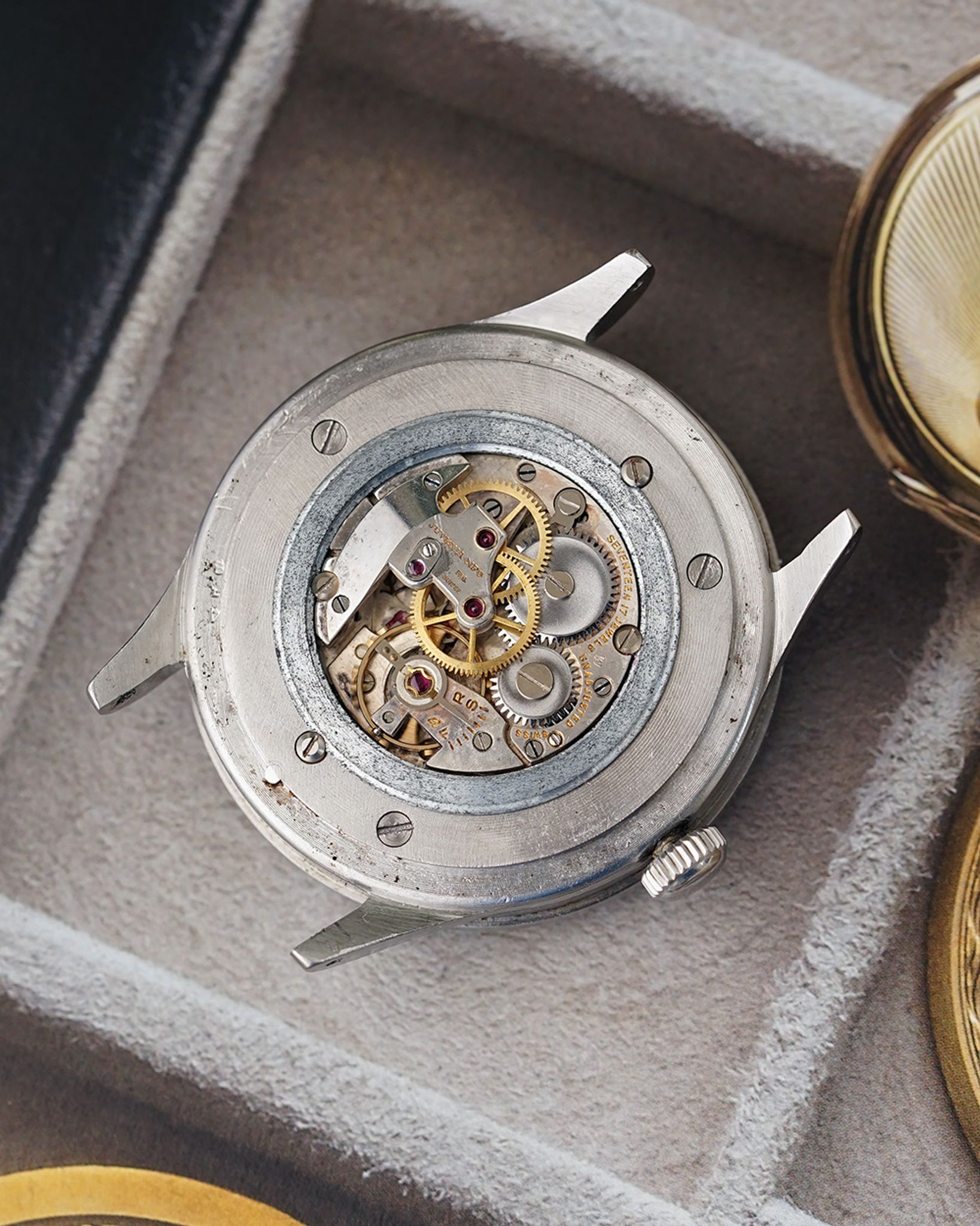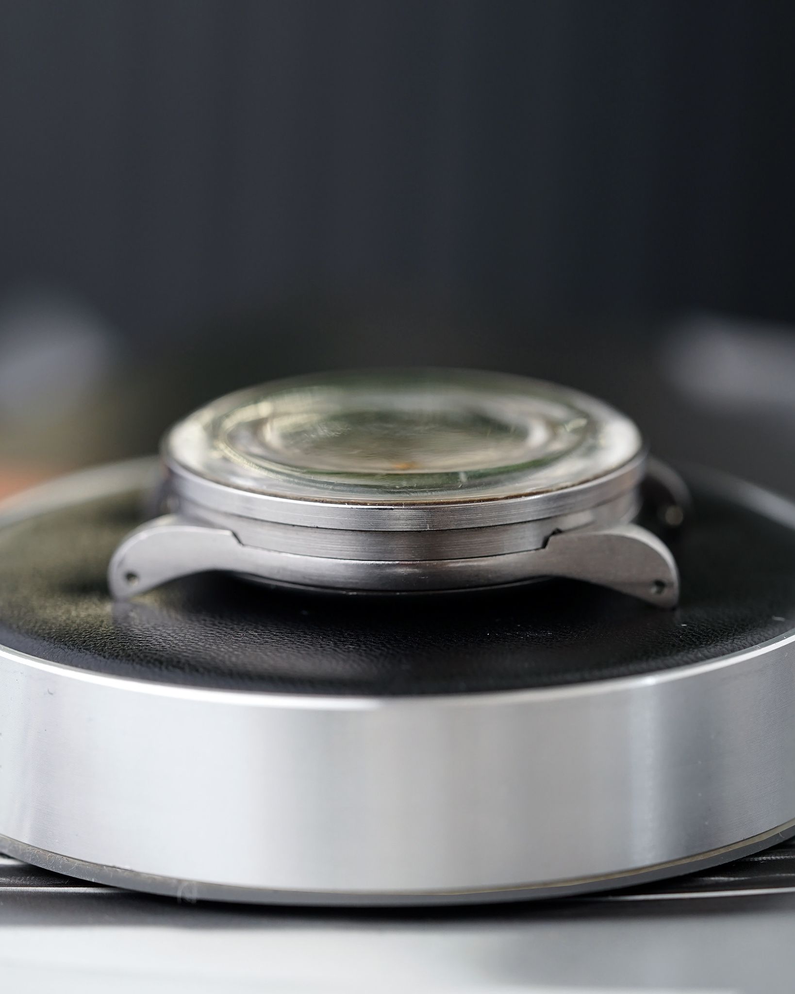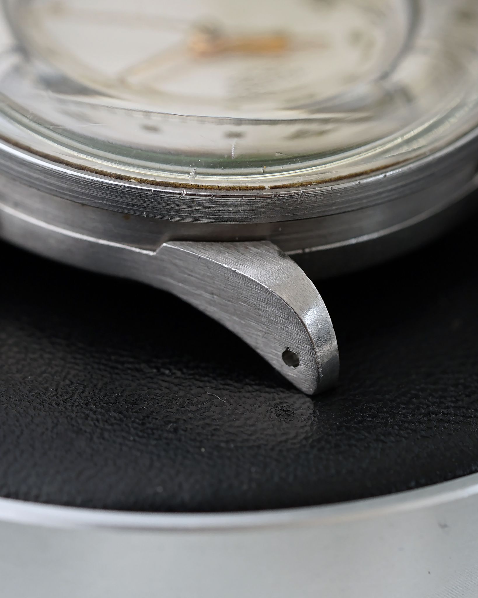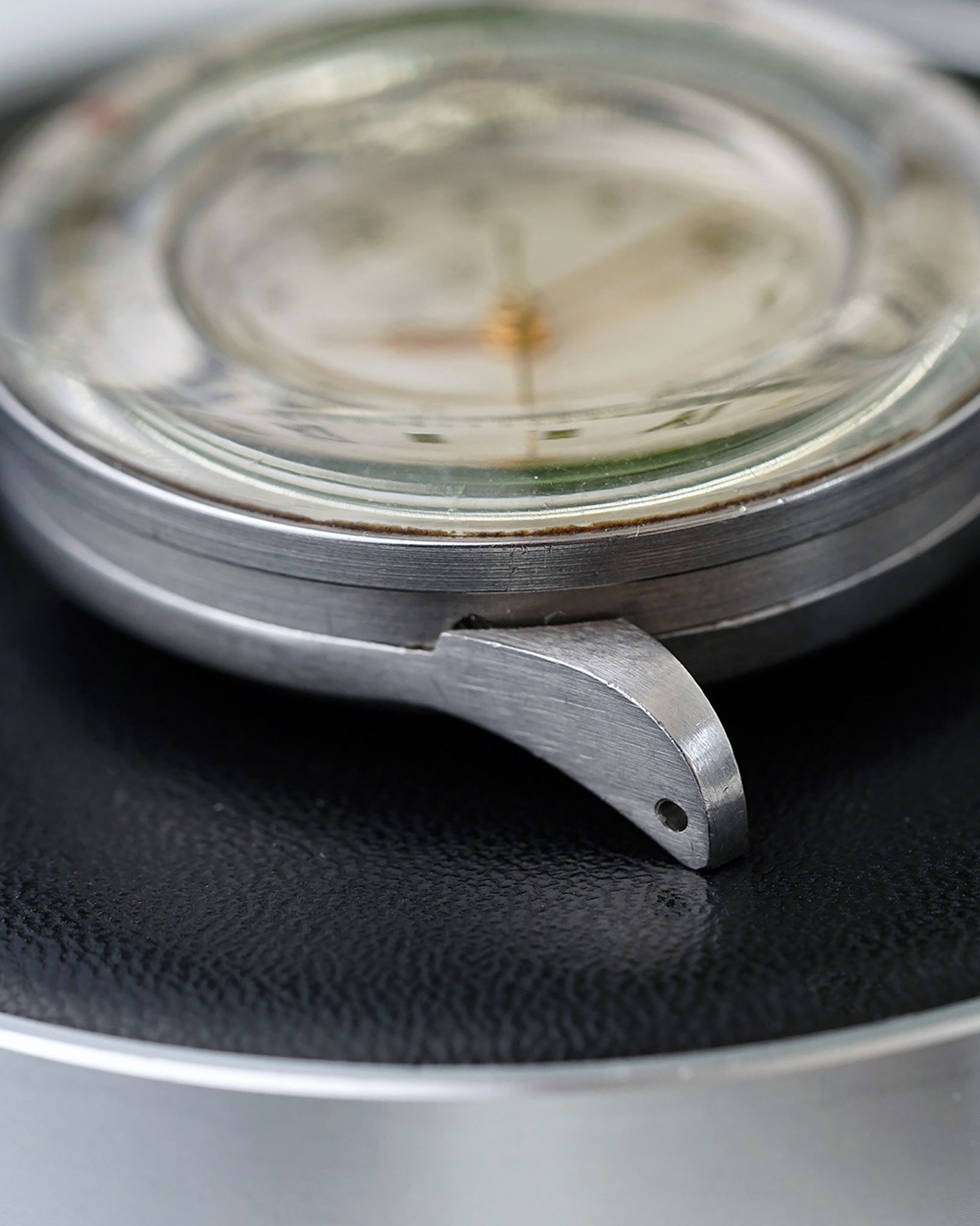 Finding these pieces is a challenge in itself, and discovering one in such exceptional condition is even rarer. This example stands out with its fabulous, unpolished, and remarkably sharp state. The dial and rotating bezels are in stunning shape, showing no noticeable degradation, while the domed plexiglass, known as the 'Refrascope,' remains intact and crack-free. This particular version is the highly sought-after no-lume, radium-free variant. Adding to its charm, the dial features the text 'Fab. Suisse,' indicating it was originally intended for the French market.