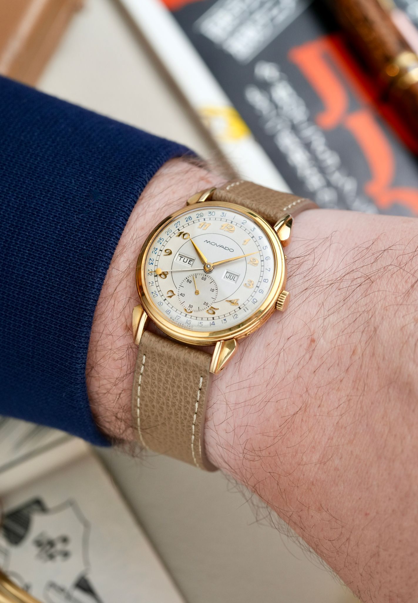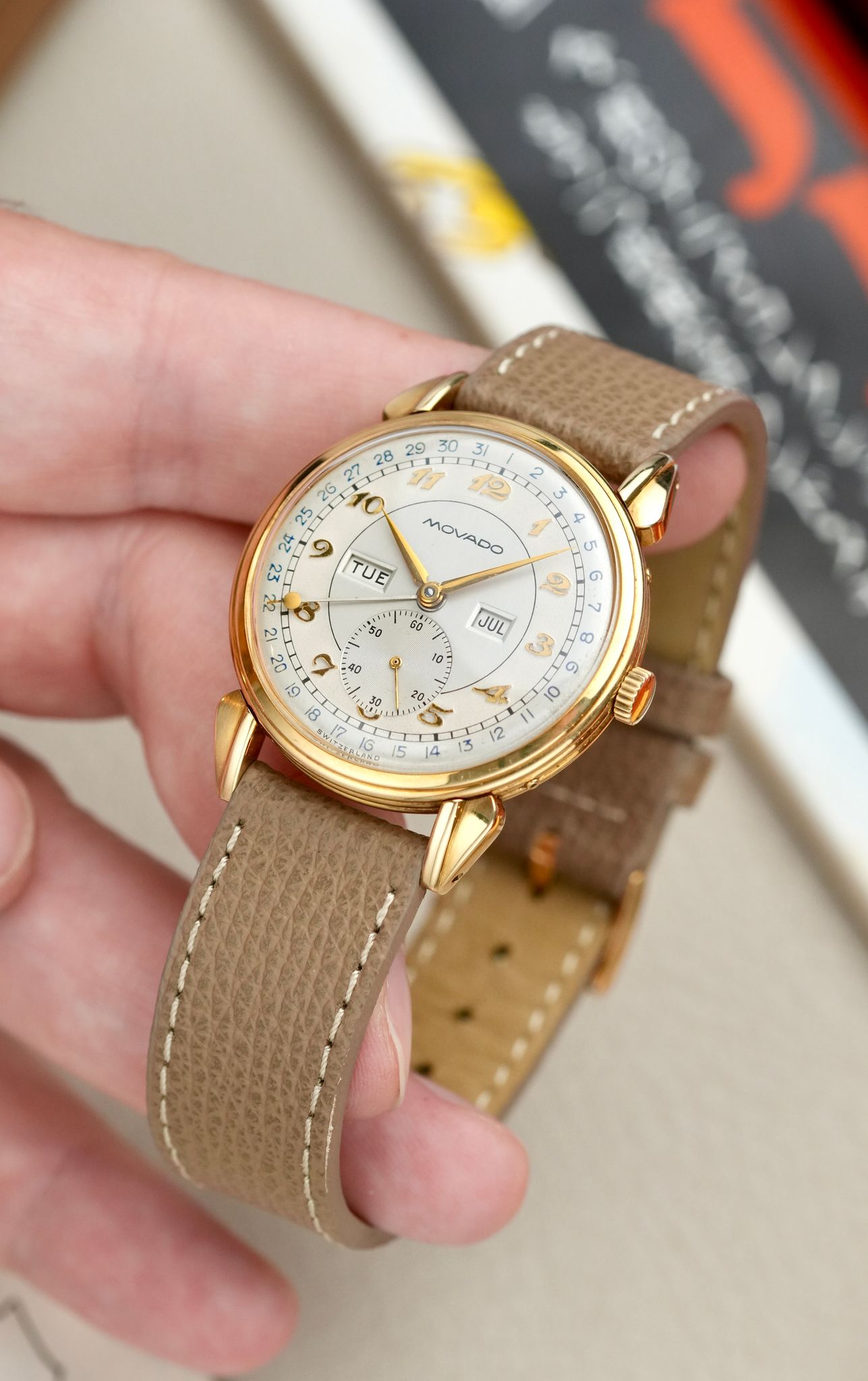 Movado - 1950s Movado Triple Calendar 14K YG Breguet Numerals
