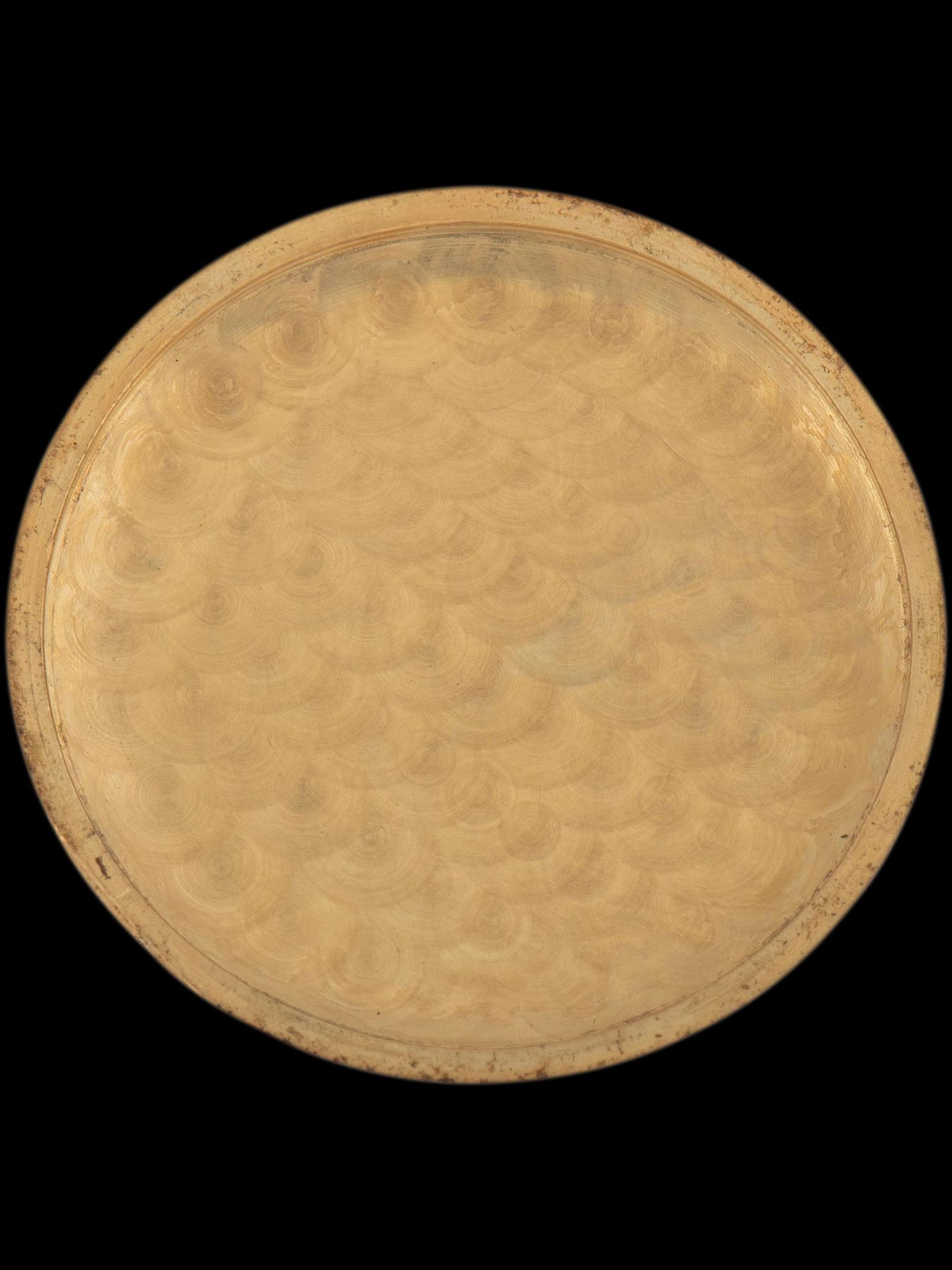 The original satin silver dial features gold markers along with a Calatrava-style "beaded" minute track. The dial displays no damage, and the only element of age are some spots of "radium burn", which is most apparent just right of the "Zenith" text. The diminutive radium lume plots located at the tip of each marker are nearly invisible to the naked eye and show a subtle warm patina with varying light degradation present throughout. The original radium yellow gold hands have developed a golden-beige patina and exhibit no degradation under UV light inspection.