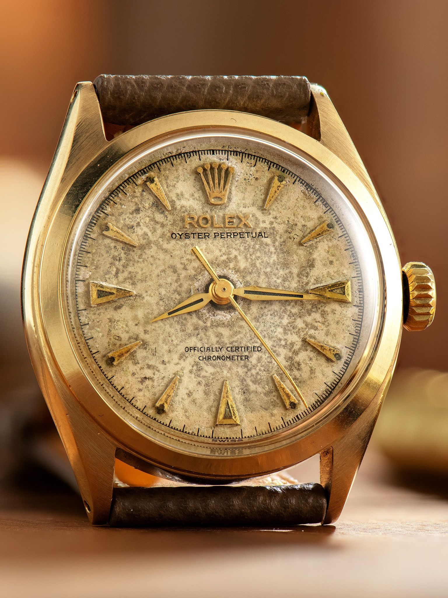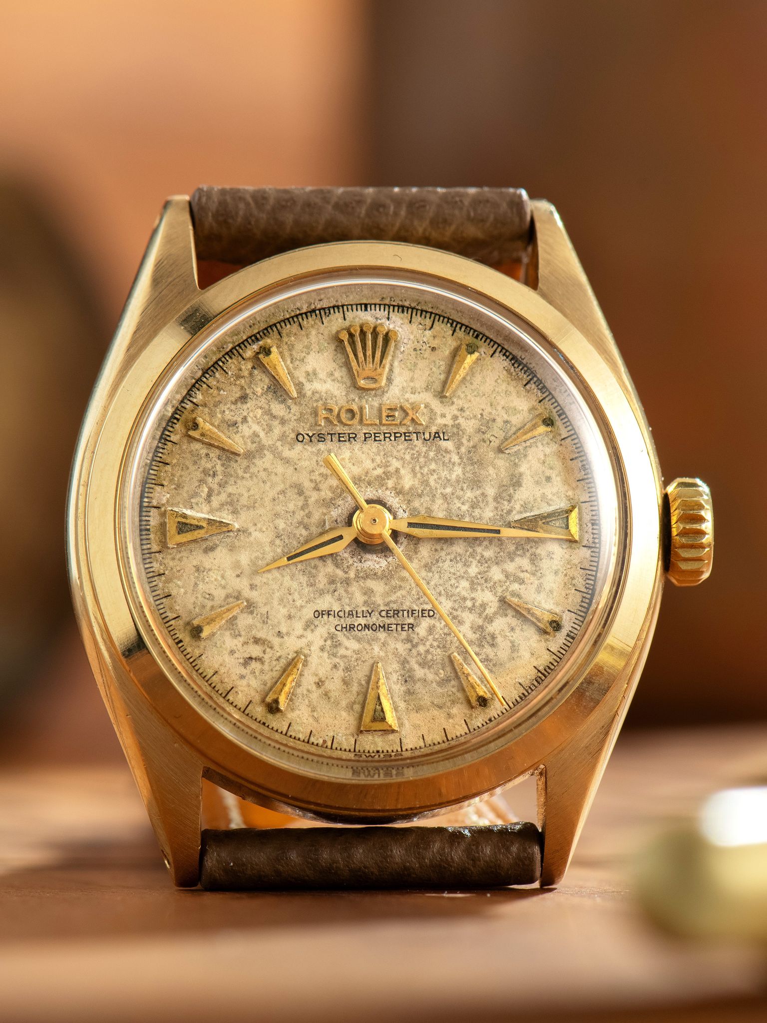 1952 Rolex Oyster-Perpetual 18K YG (Ref. 6084) "Big Bubble Back" Patina Dial