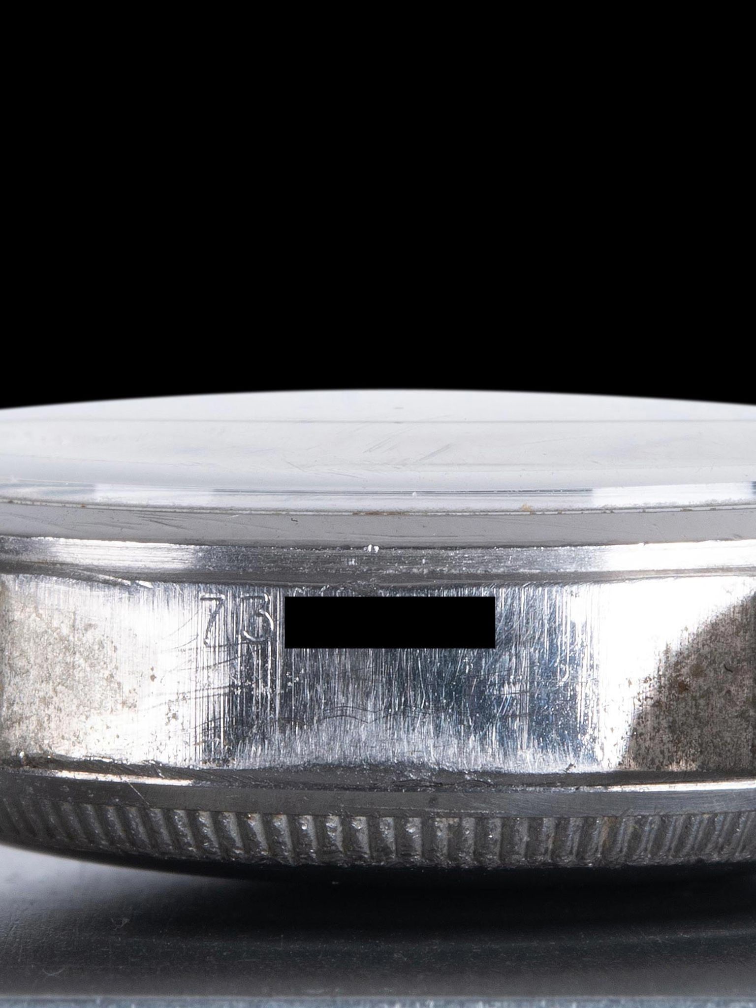 The beautiful and charming chapter ring "Swiss Made" dial has achieved a warm and attractive coloration with consistent brown spotting around the dial. Apart from the patina, the dial exhibits no scratches or marks. The original radium lume has taken on a dark patina and exhibits expected degradation throughout, though all lume plots remain partially intact. The original leaf-style hands have been professionally restored with tritium and have a pale ivory coloration.
