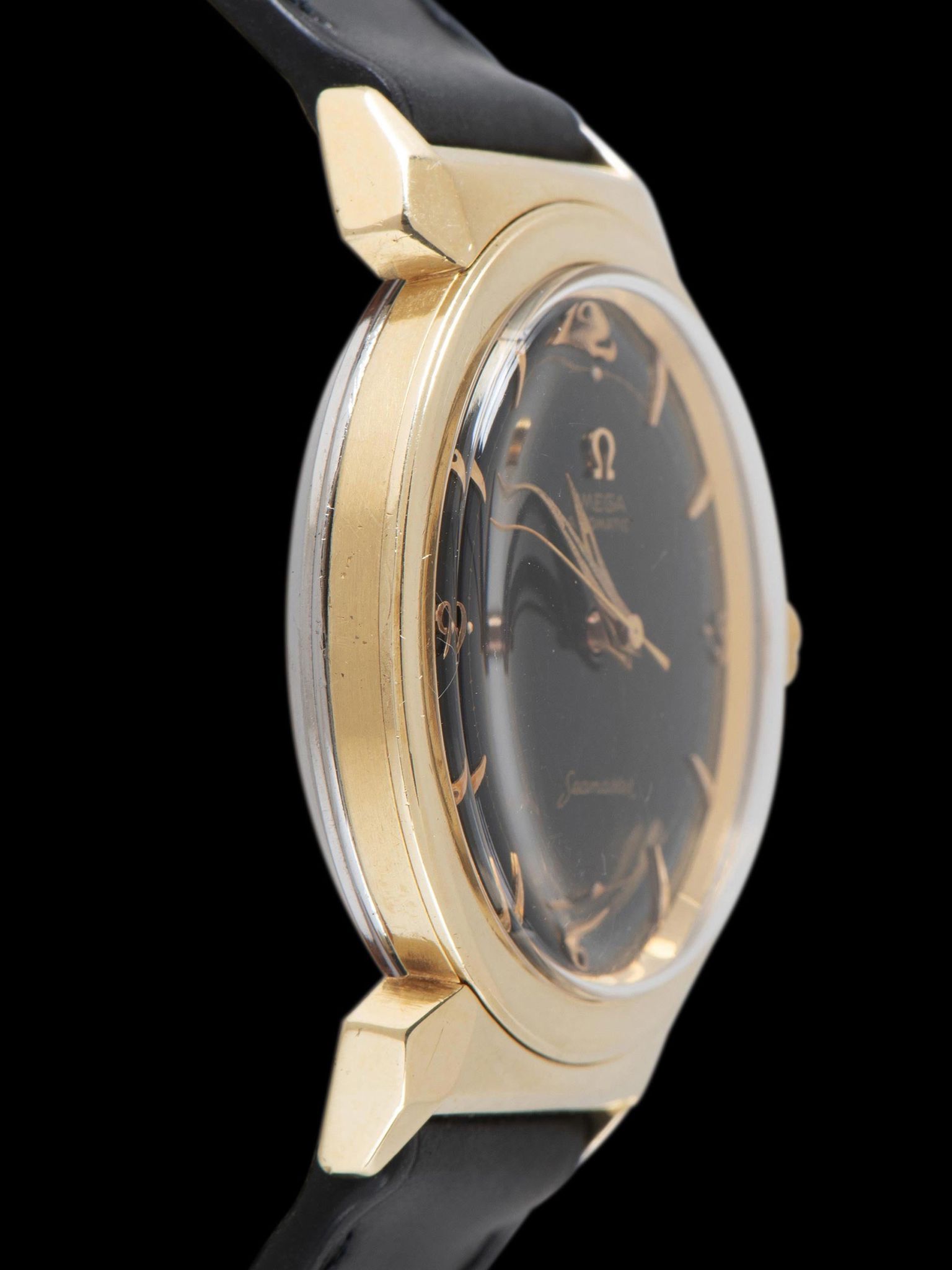 1954 Omega Automatic Seamaster 'Gold Cap' (Ref. 14363-1 SC) Black Dial W/ Breguet Numerals & Horned-Lug Case