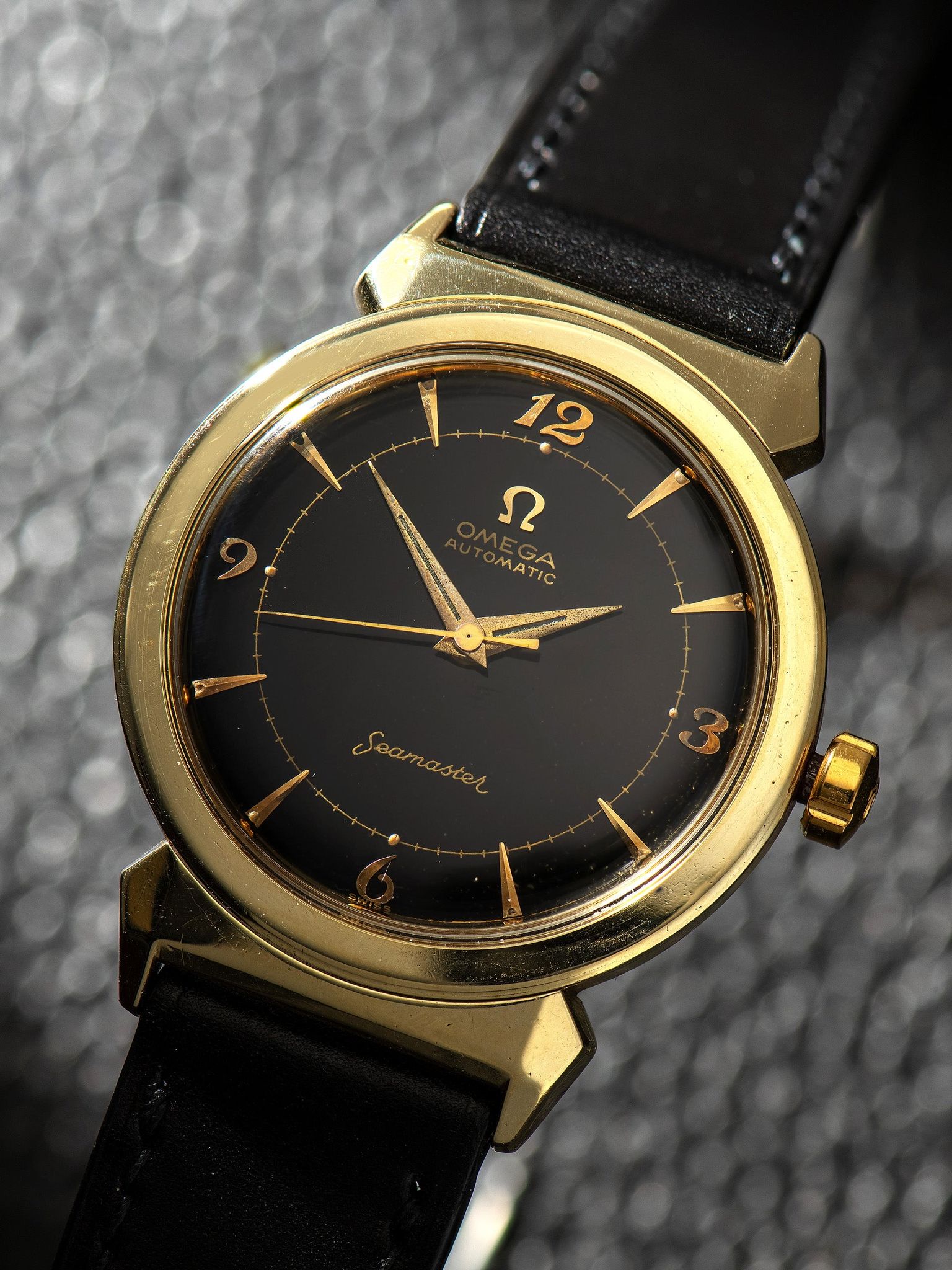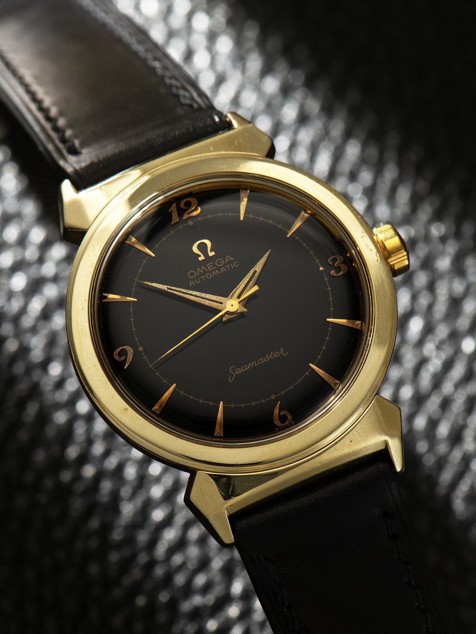 Omega - 1954 Omega Automatic Seamaster 'Gold Cap' (Ref. 14363-1 SC) Black Dial W/ Breguet Numerals & Horned-Lug Case