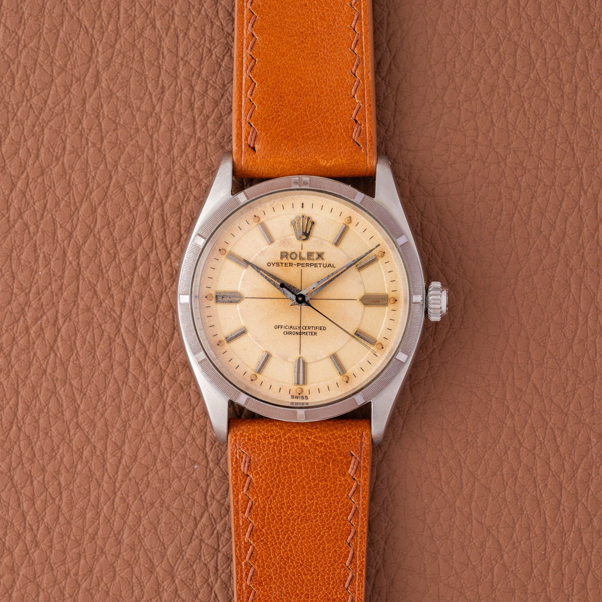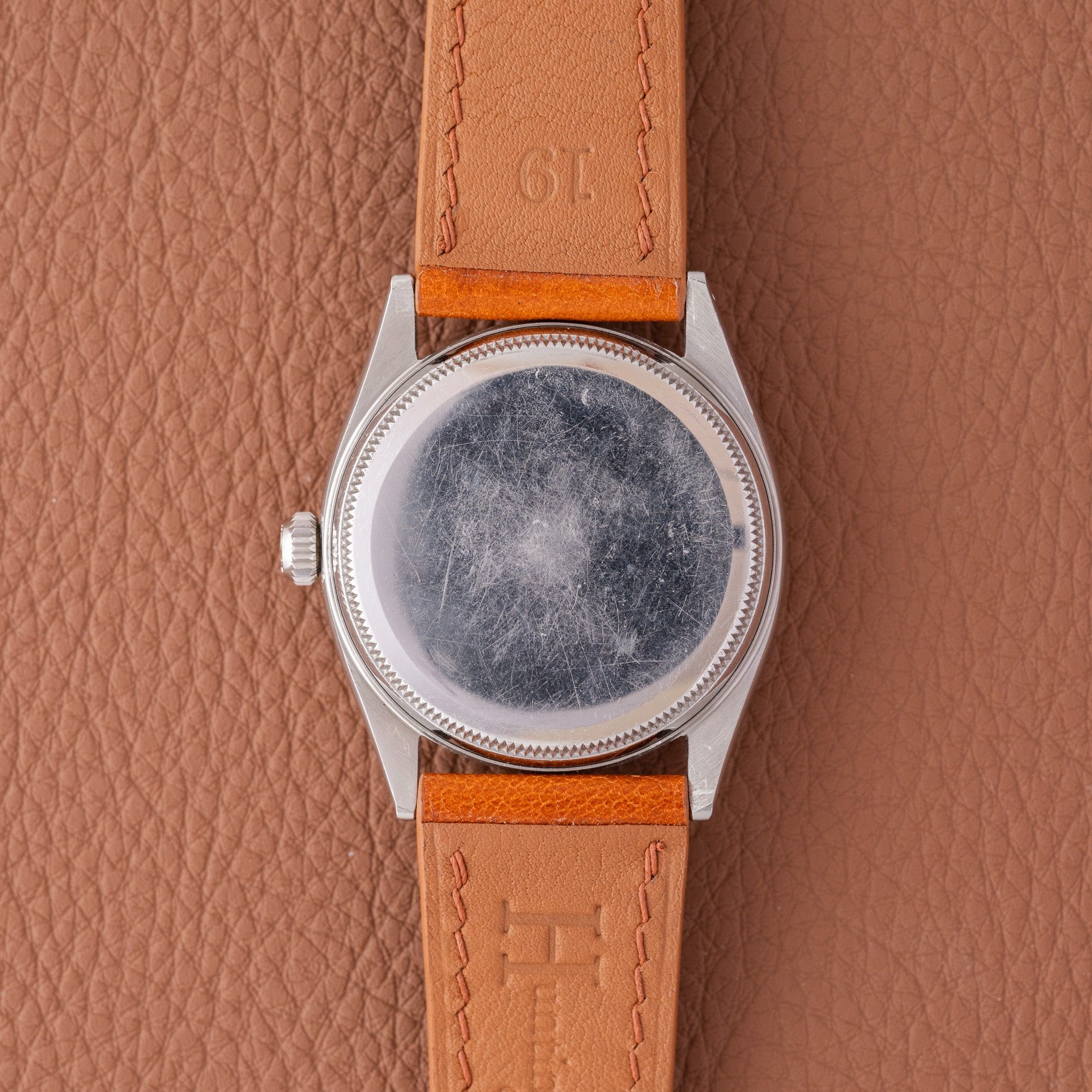 This Ref. 6565 is a perfect example of Rolex’s 1950s craftsmanship: refined, wearable, and built to last. With its sector dial, dauphine hands, and engine-turned bezel, it showcases the brand’s aesthetic evolution from pure functionality toward elegant versatility. Collectors value these early Oyster Perpetuals for their honest proportions, timeless design, and understated presence — traits that continue to define Rolex today.