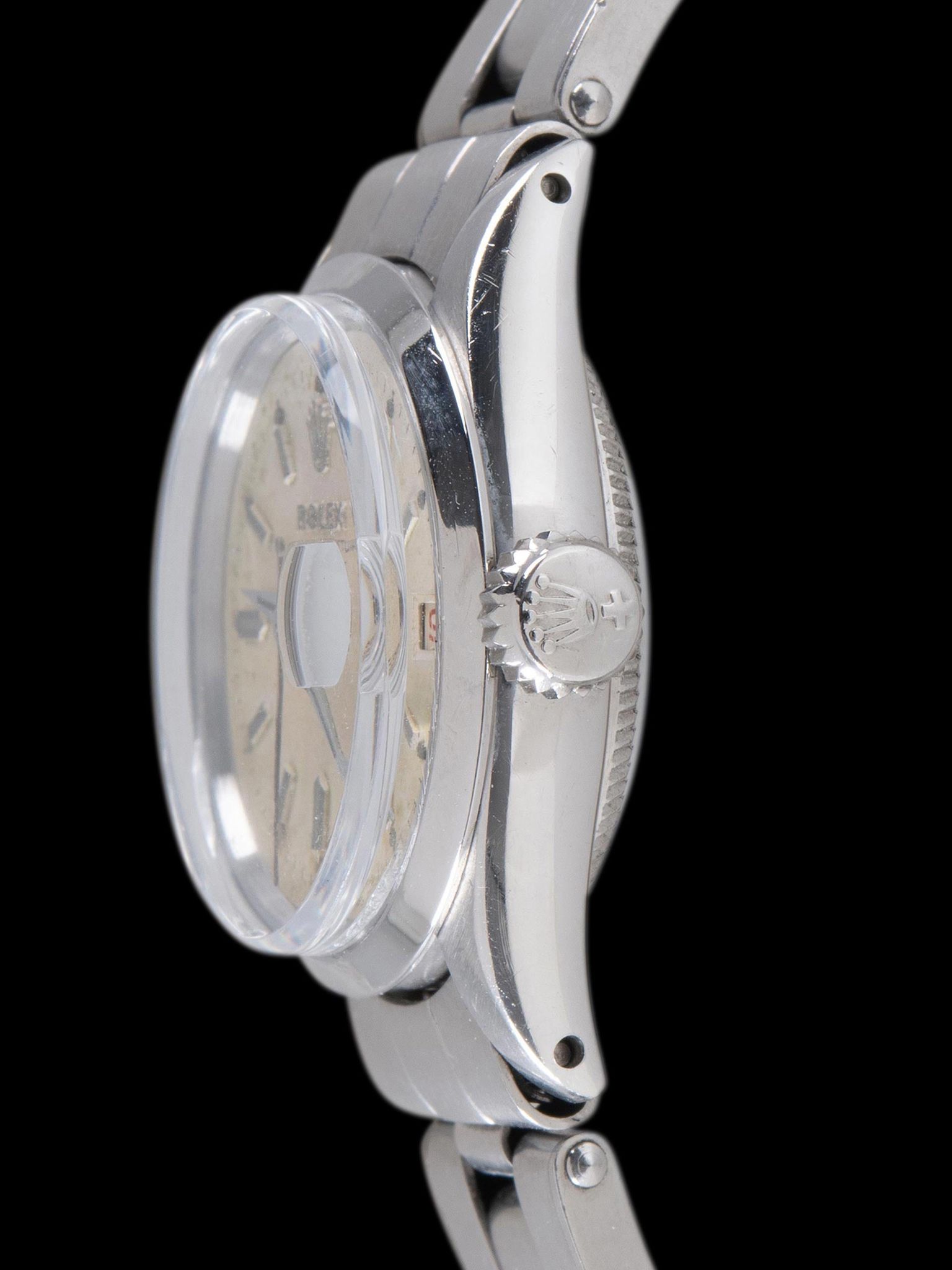Taking all those iconic cues from the men's Date and shrinking them down, this ladies' Date is a dynamic classic, perfect for quite literally any setting. Featuring a 26mm stainless steel case with white gold fluted bezel, silver dial, and a rivet oyster bracelet, this piece would make an excellent start for a new vintage collector, or be a great addition to an expanding collection.