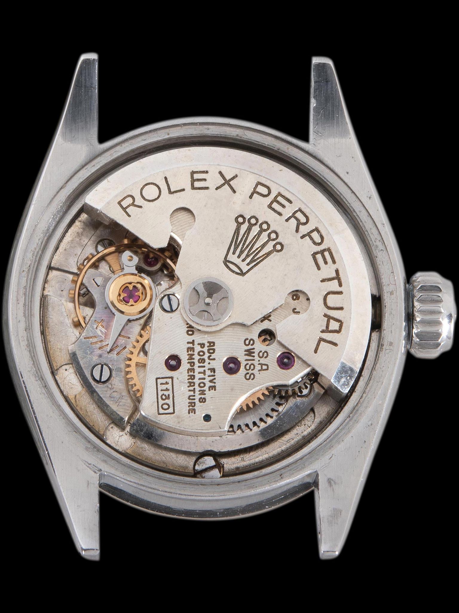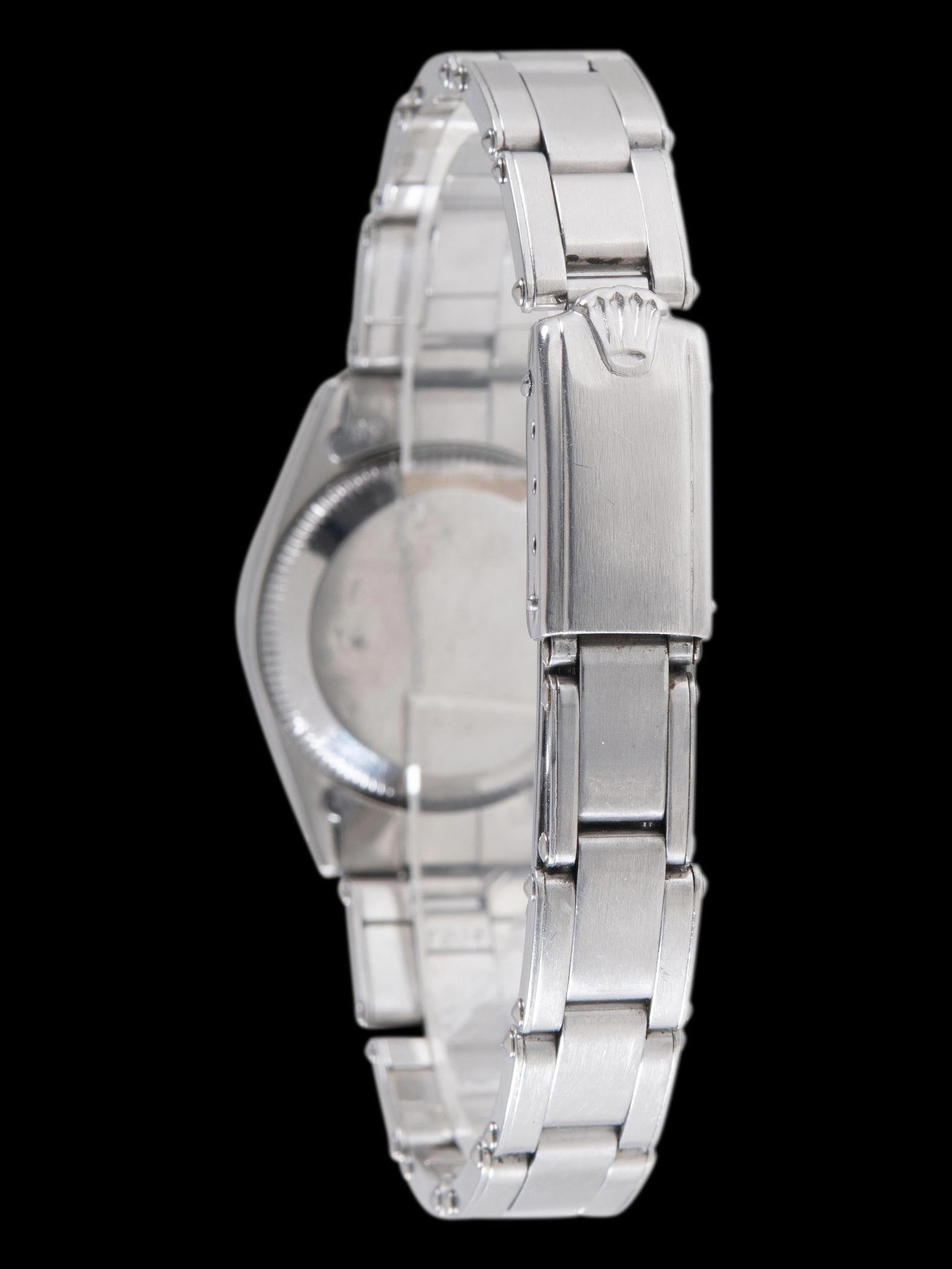 The stainless steel case is minimally polished, and is in excellent condition, showing elements of light use throughout. The smooth stainless steel bezel is in clean overall condition with gentle wear present. The era-correct Rolex 7204 Oyster rivet bracelet with 66 end pieces dates to 1970 and retains 12 links that show light stretch and will fit up to a 6 1/2-inch wrist.