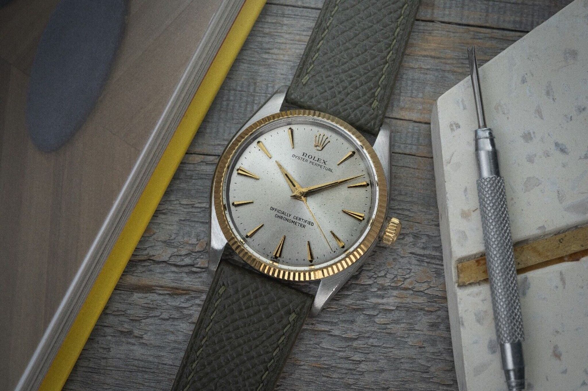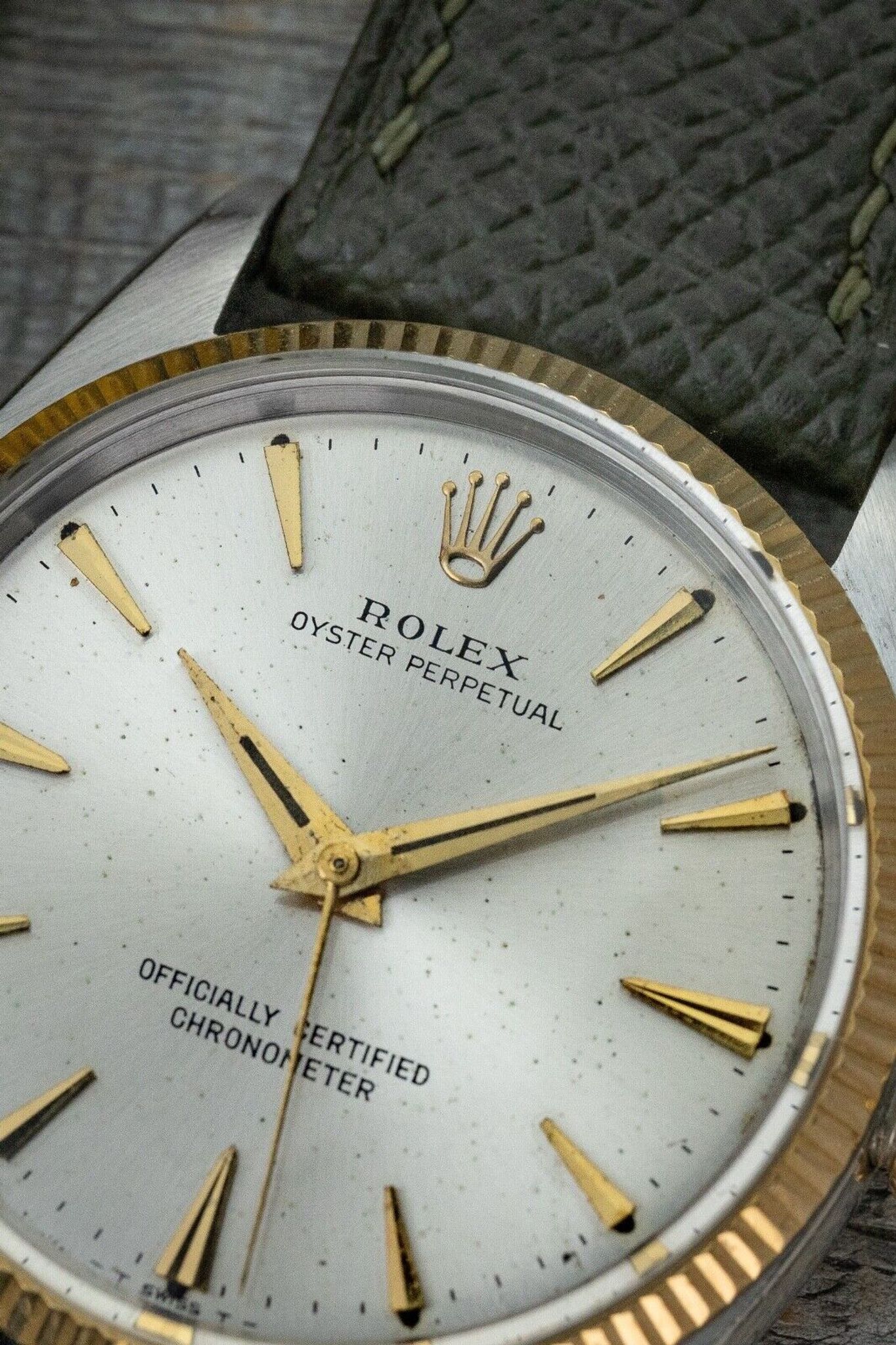 Rolex - 1958 Rolex Oyster Perpetual 6567 Two Tone Gold + Stainless- Tropical Patina dial