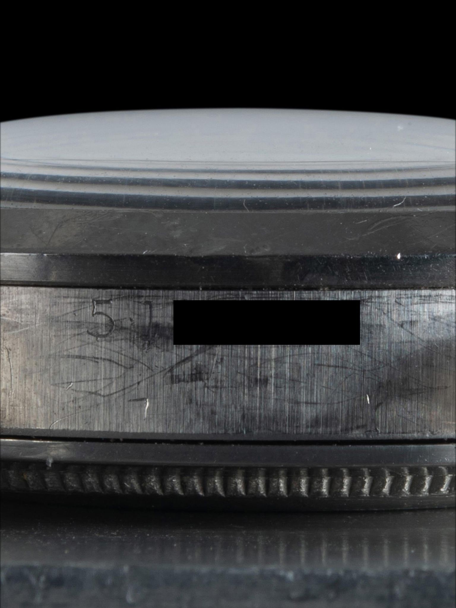 The original "Swiss Only" gilt chapter ring dial possesses a beautiful vintage aesthetic and has achieved a matte texture that is consistent throughout. This patina gives the dial a deep grey color instead of the usual glossy black dial. The gilt text and printing around the dial are all fully intact and in excellent condition. The strontium lume in the dial all remains intact under UV light inspection and has achieved a dark grey and green coloration throughout. The original strontium lume hands match the dial nicely, under UV light inspection the minute hand exhibits some minor lume loss that is nominal in nature and remains stable, and the hour and second hand remain fully intact.