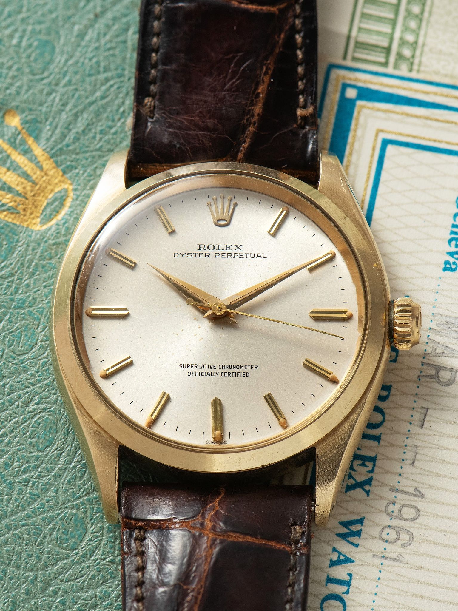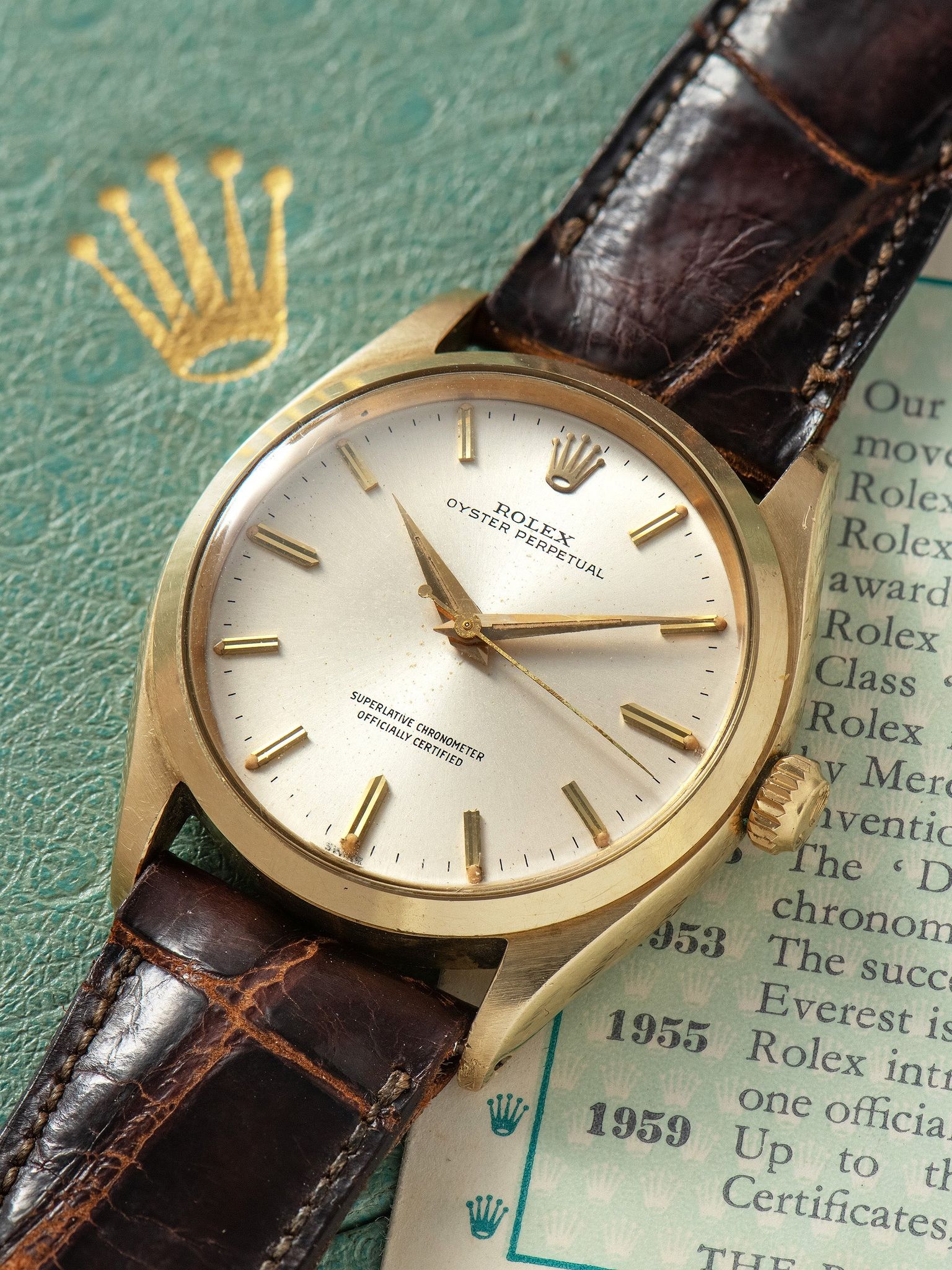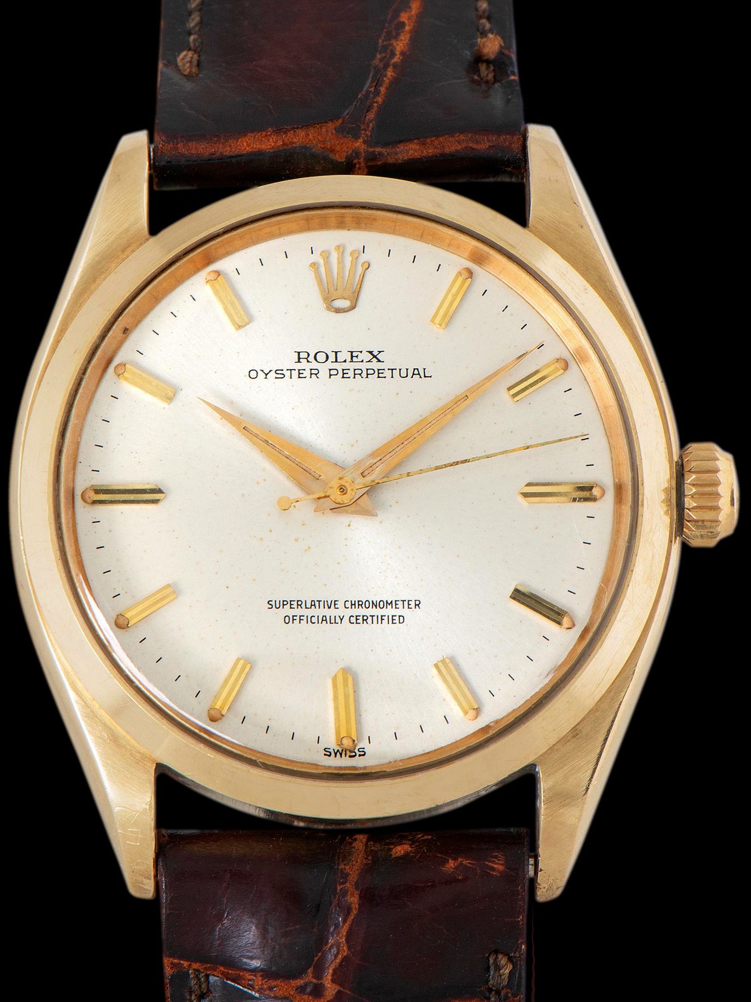 1960 Rolex Oyster-Perpetual 14k YG (Ref. 1002) Silver Dial W/ Box & Papers