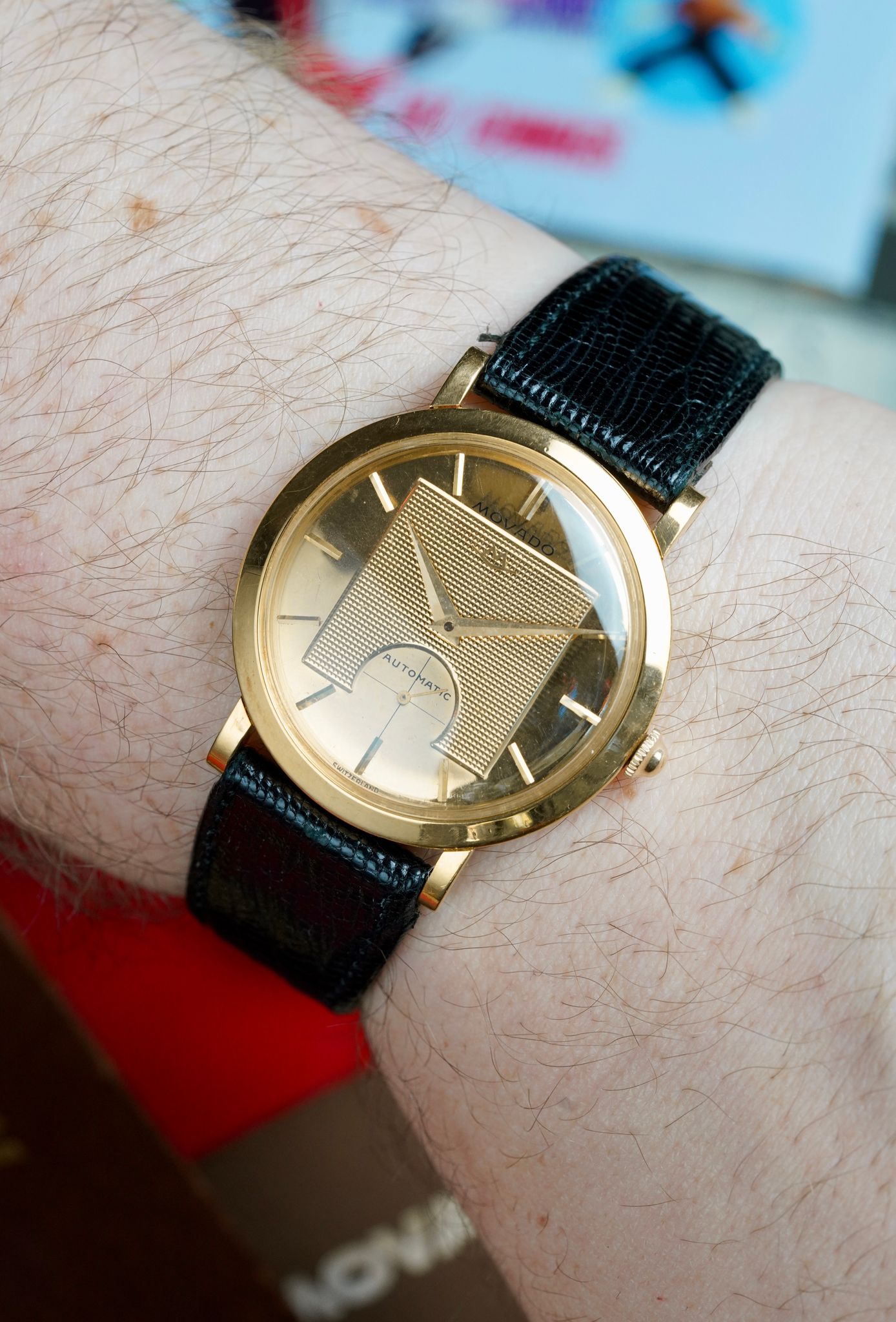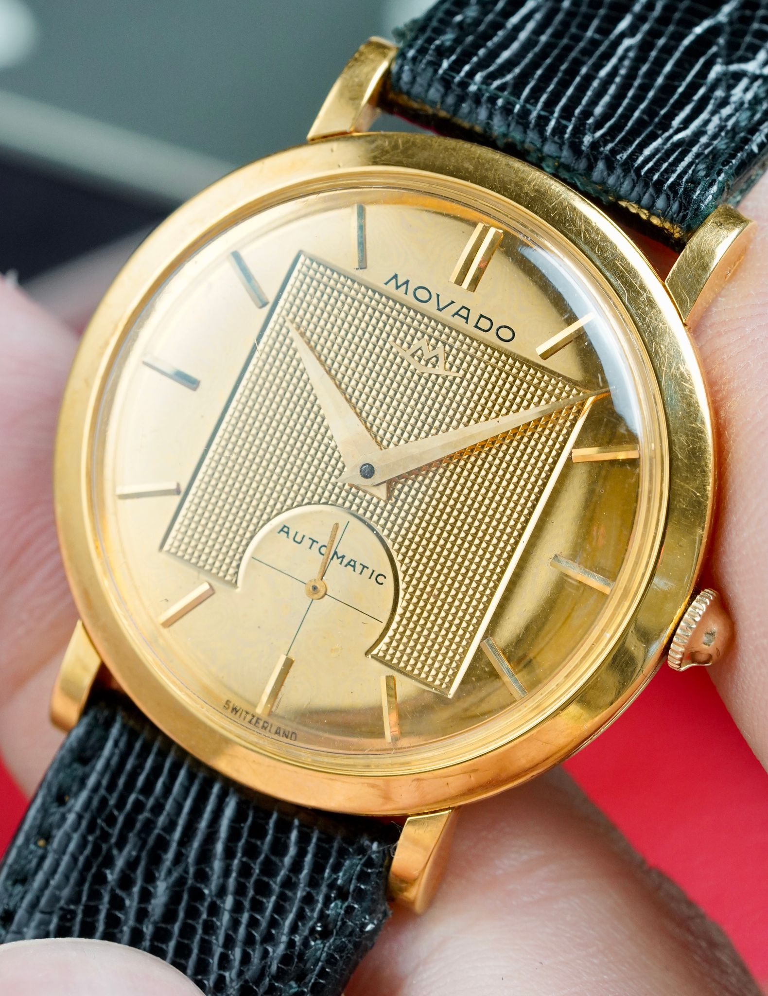 Not to mention, many of Movado's offerings of the era were gold filled or 14K. This 35mm case is nice and solid 18K yellow gold with strong hallmarks in tact.