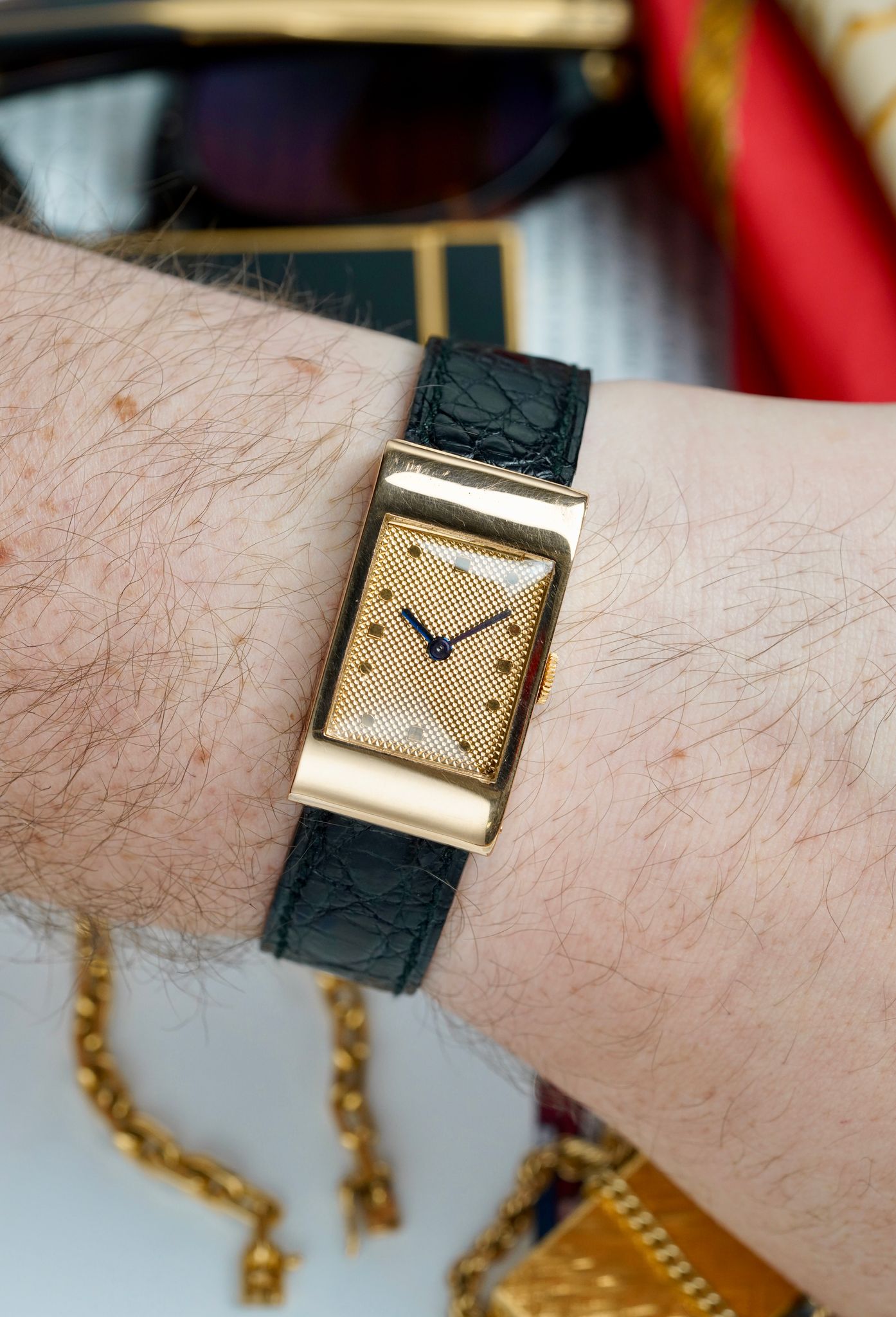 This example is in great condition, worn well but not without care. Its dial is near flawless and its movement is keeping great time. A large model, measuring 36x23mm, it’s perfect for any sized wrist. Custom straps to fit your wrist at request.