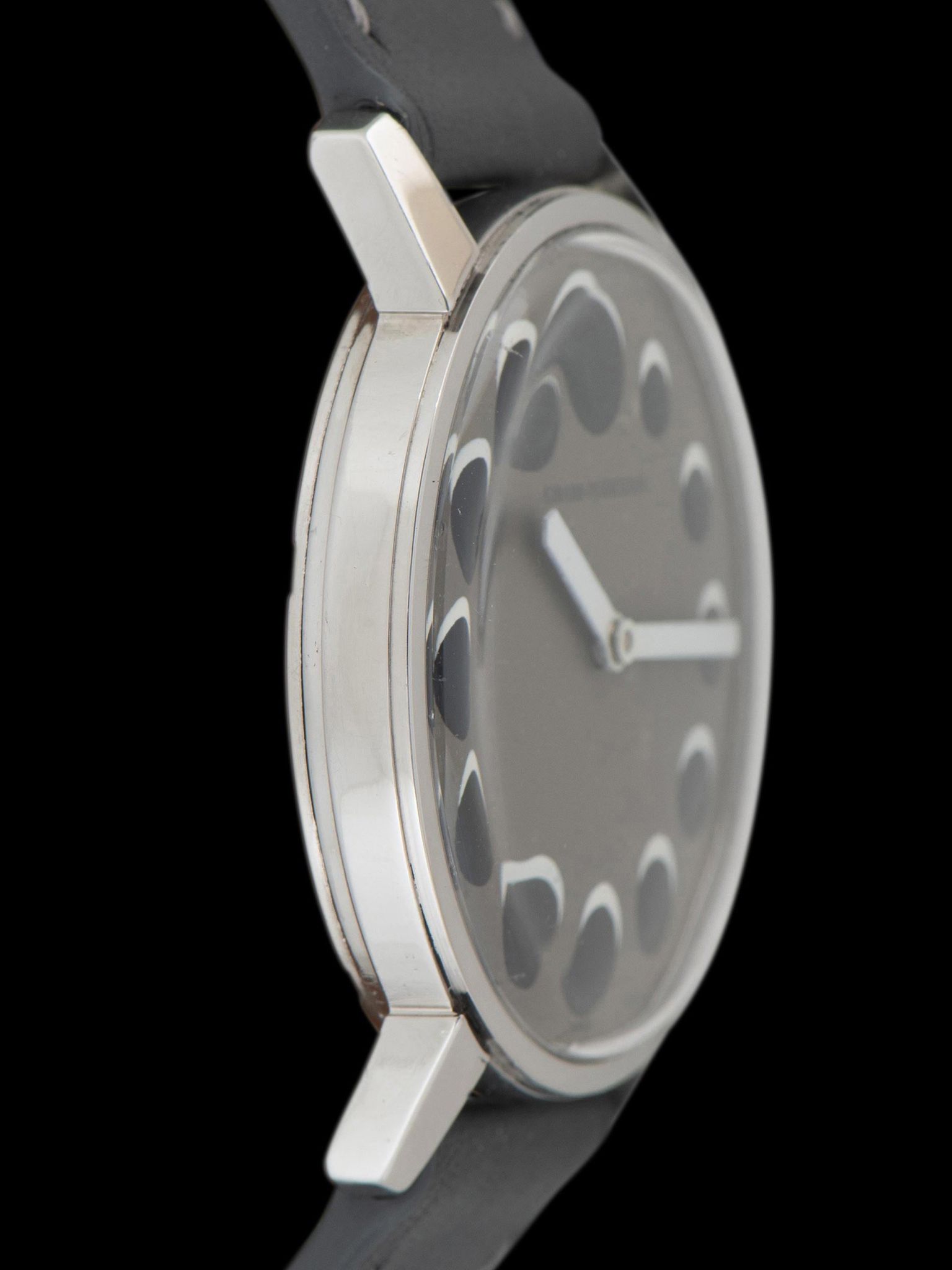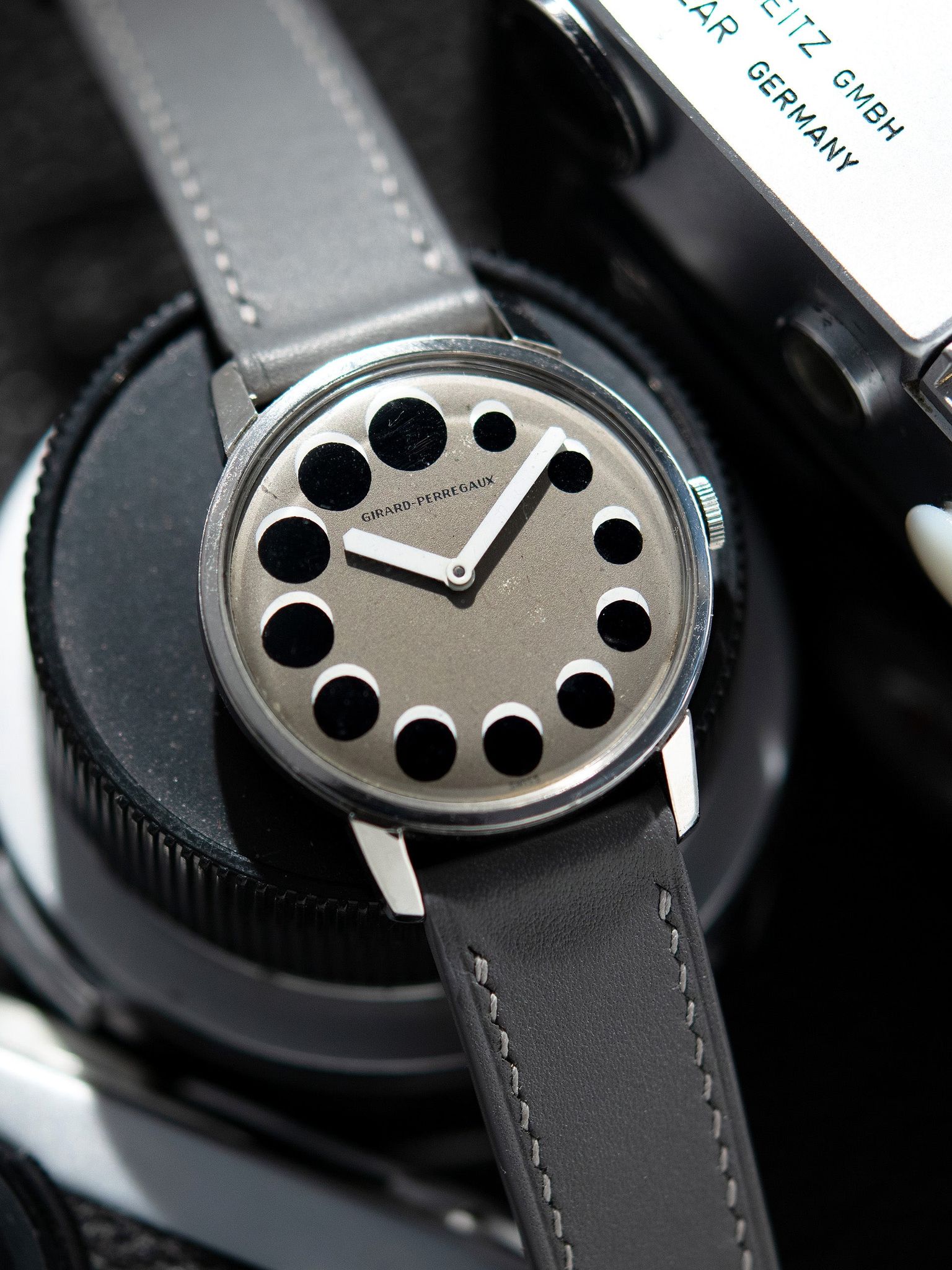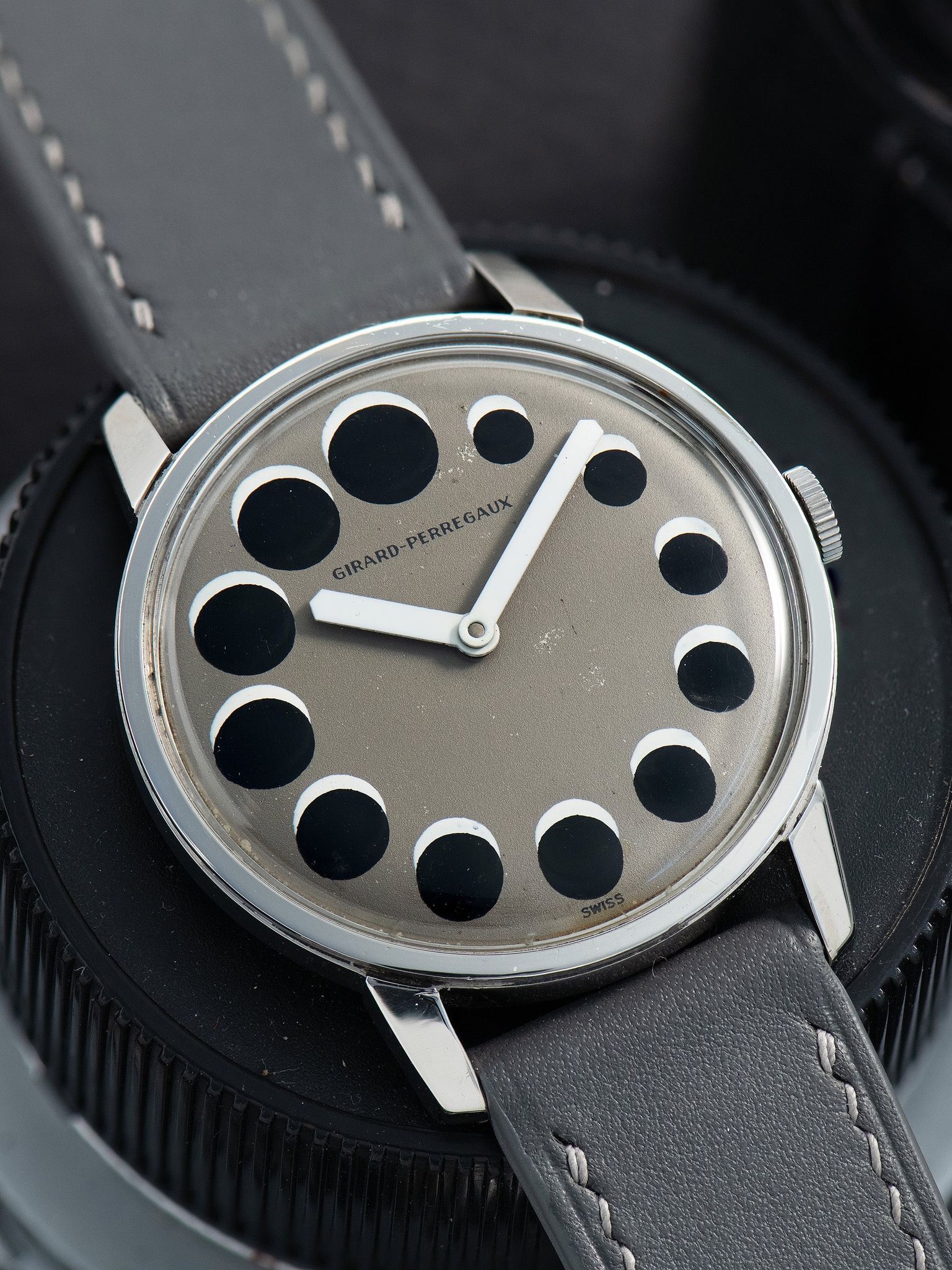This ultra mid-century, incredibly stylish, and charmingly simple Girard-Perregaux is affectionately known as the 'Playboy watch' as this timepiece was once anointed in the iconic gentlemen's magazine as a wristwatch they recommend. More officially, this watch was named the 'Moon Watch' by Girard-Perregaux directly in the brand's catalog, and was designed so the hour markers appear like different phases of the moon, though this is just for aesthetics, as the watch uses the GP in-house caliber 12.3 which is a simple time-only manual wind movement.