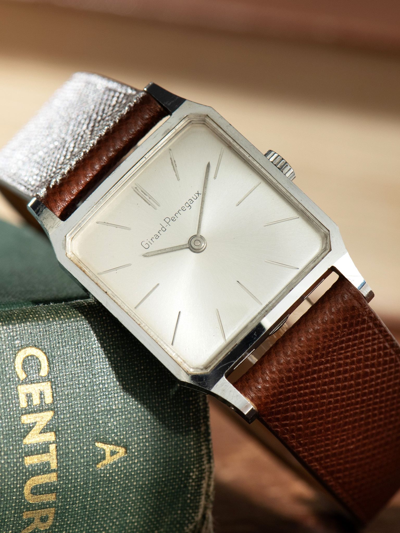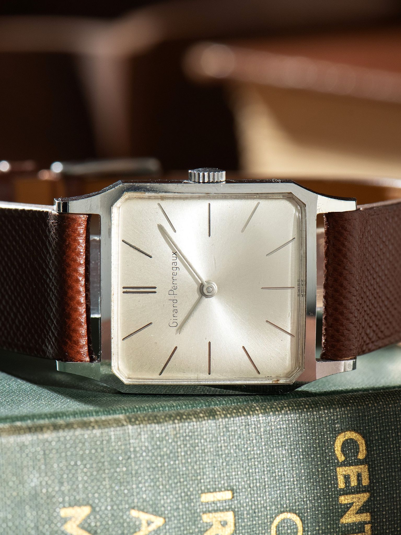 This piece from the '60s is a delightfully subdued example of the brand's design language, featuring a small, squared-off case with curved lugs, and silver dial with matching markers and hands. It's a watch that easily flies under the radar while also looking great with literally any style or setup.
