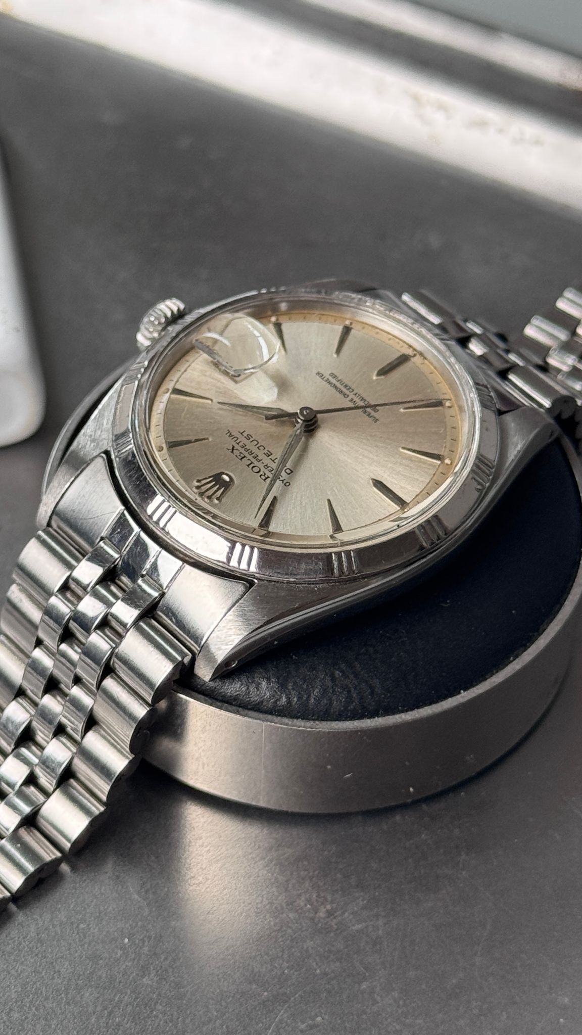 This is an early Datejust from 1961. Despite its 65 years old, the watch still retain very sharp case and structures. And this is for the best because a bamboo bezel Datejust has to be sharp or not to be. Everything else Is classic to the Datejust models of that era including the jubilee bracelet with the big crown logo on the clasp.