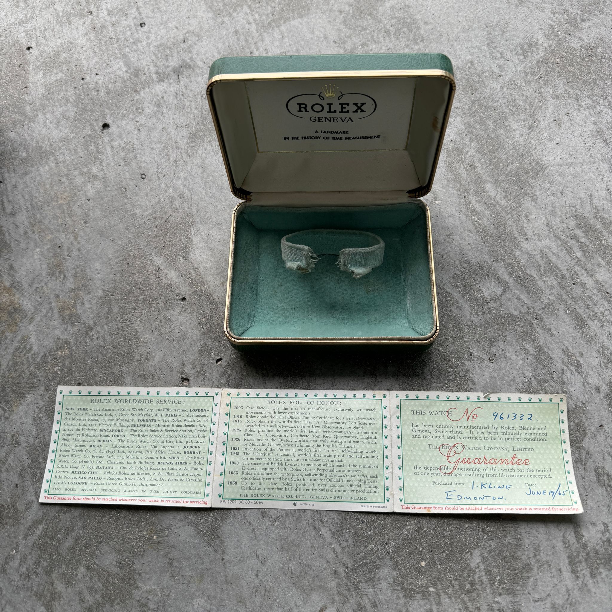 The serial begins with 961xxx dating this watch to 1963. The papers are marked 65 as the watch was sold in 1965