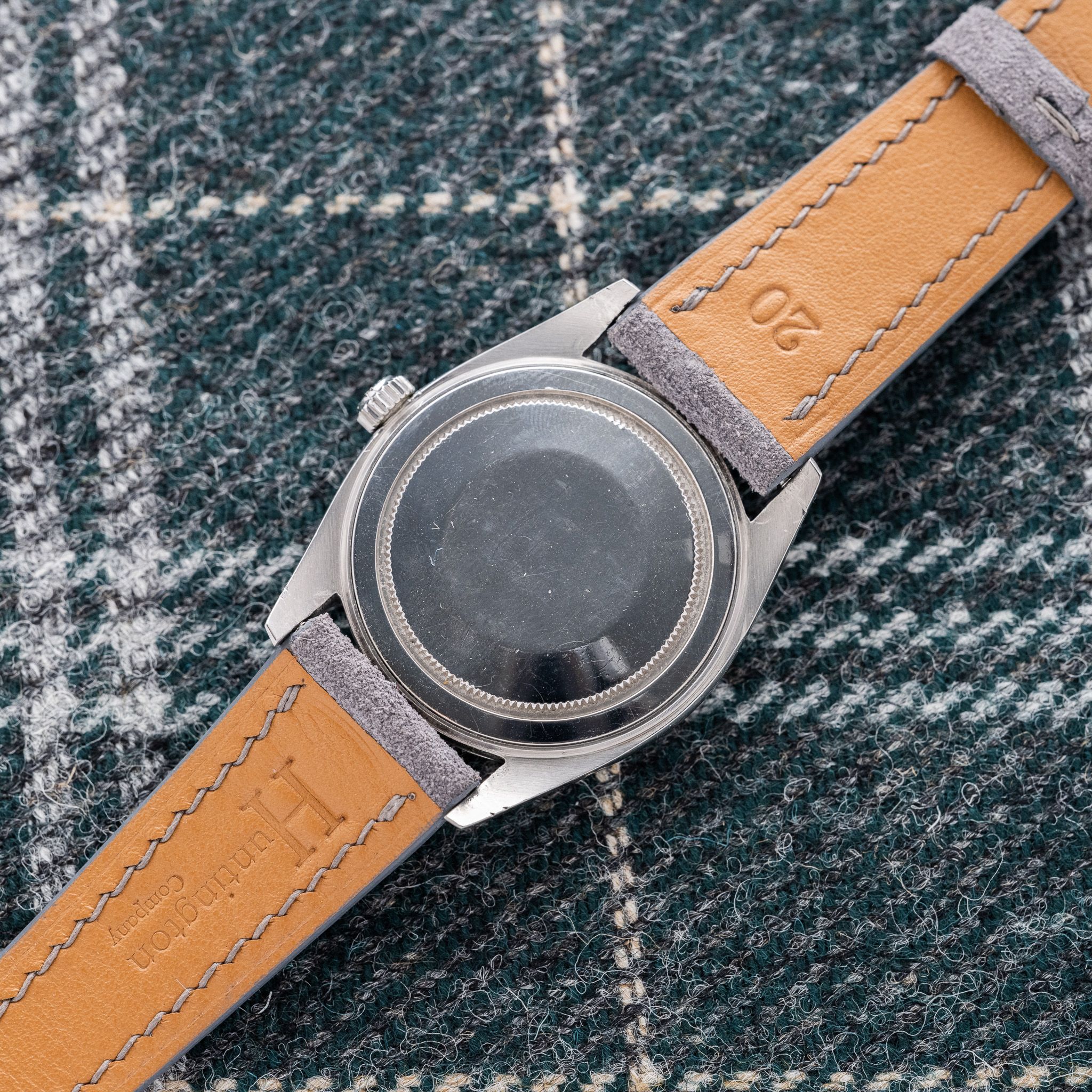 Strap & Buckle: The watch is on a handmade Italian suede strap.