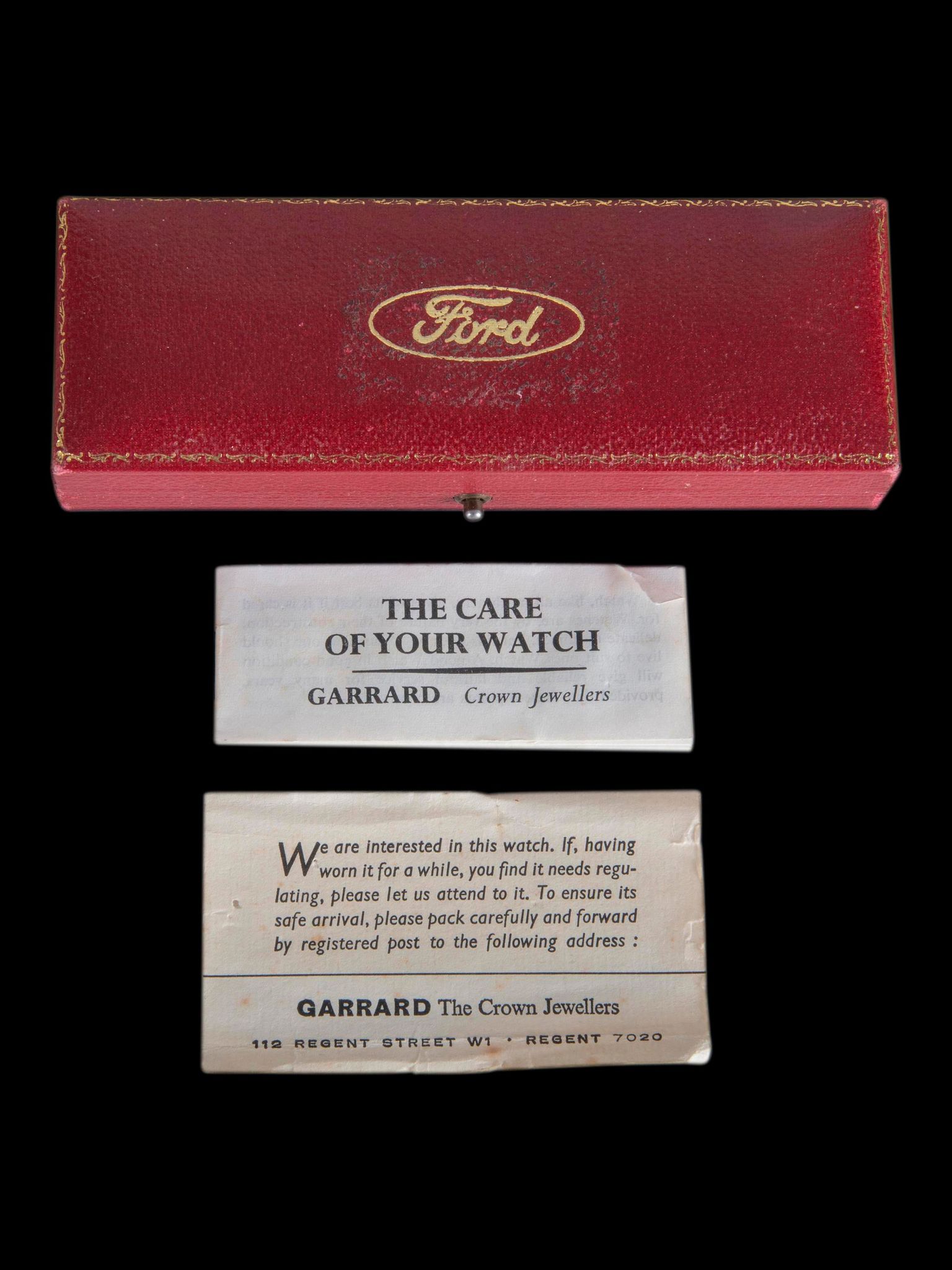The watch comes complete with its original Ford presentation box and Garrard papers. The watch is keeping time, but the service history is unknown. A movement service can be provided upon request.