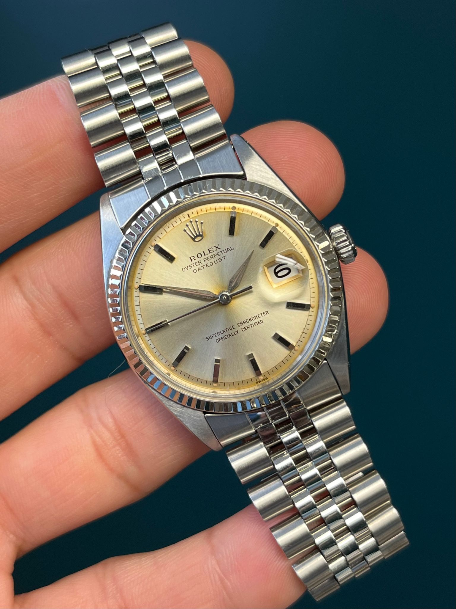 The Vintage Rolex 1601 Date just is an iconic watch known for its classic design, precision, and historical significance. With a stainless-steel case, a distinctive fluted bezel, and a reliable automatic movement, this 36mm timepiece is a versatile choice suitable for both men and women. The watch's date function, with the signature Cyclops lens, adds to its practicality and aesthetic appeal. It's a piece of horological history, dating back to the early 1960s and early 1980s, showcasing Rolex's enduring commitment to craftsmanship and innovation.