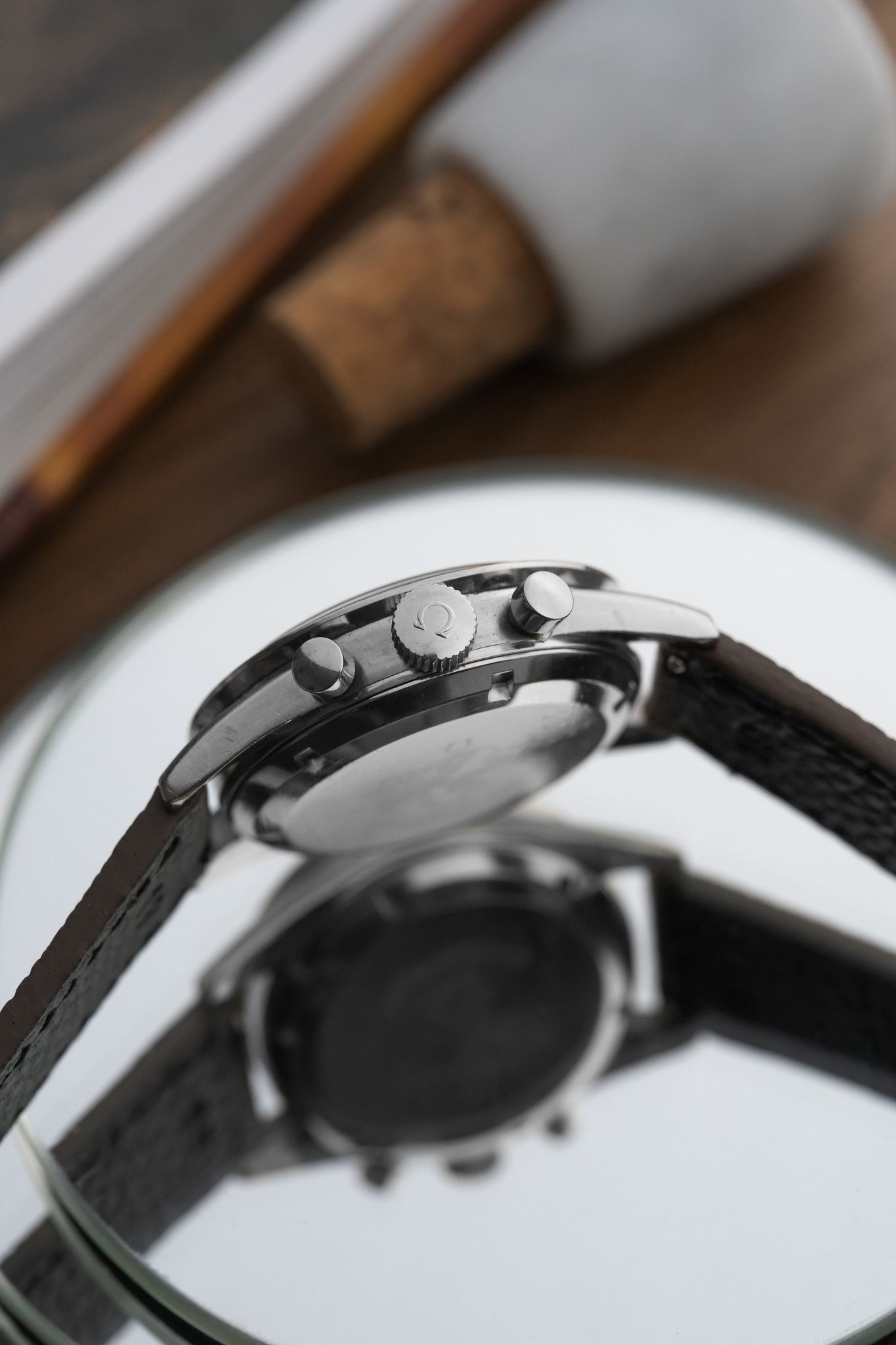 Bracelet/Strap: Bespoke leather strap with quick release pins making it for an easily removable strap.