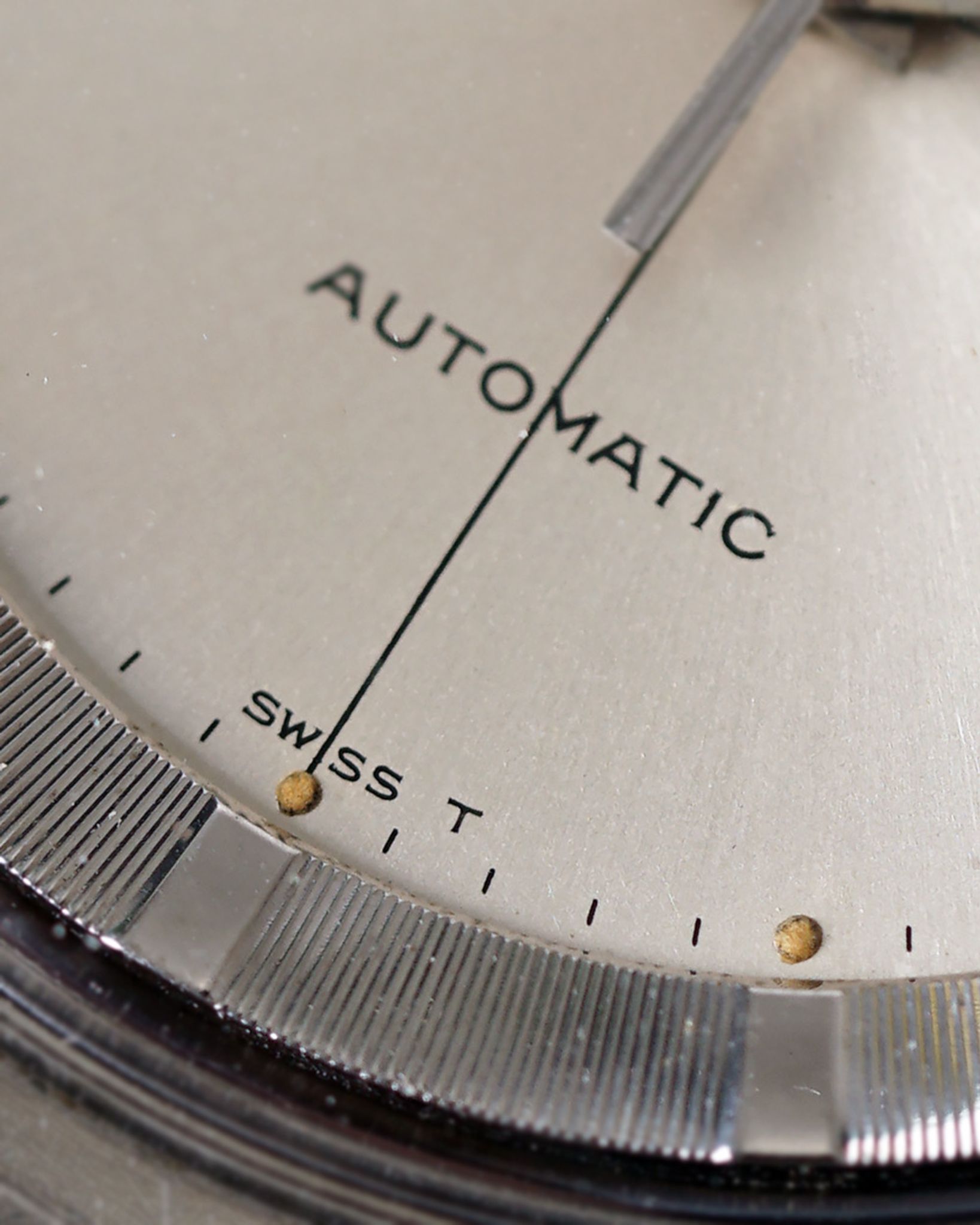 The twisted lug case retains all its shape and lines, with light and honest signs of use. The case retains its original signed crown. The case back factory engravings remain visible.