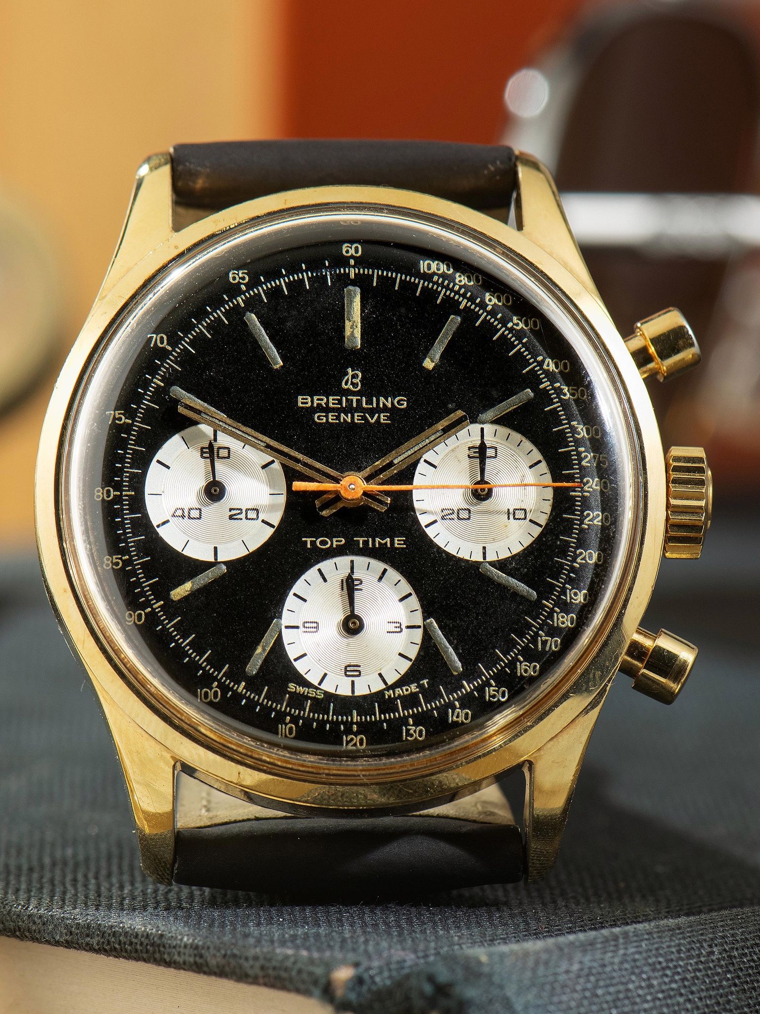 We all know Breitling for their impressive and collectible chronographs, from the early ref. 806 Navitimers to their more colorful designs of the 70s. The Top-Time was introduced in 1964 by Breitling as the watch for the "next generation", catering to a younger and more rebellious demographic of the 1960s, and at a lower price point than their more specialized timepieces, such as the Navitimer.