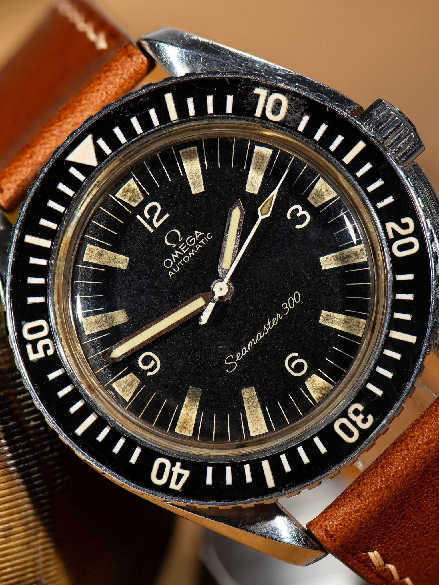 The reference 165.024 has a specific feeling and look that centers it as one of the most desirable vintage Omega diving watches ever produced by the brand. The bi-directional luminous-filled bakelite bezel paired with the high visibility 3-6-9 dial paired with the references overall larger size allows the 165.024 to remain relevant in today's sizing trends, ultimately making it an icon. The Seamaster 300 references are becoming harder to find as collectors have started to gravitate towards the reference and as awareness increases around the iconic nature of the Omega Seamaster 300 references as a whole.