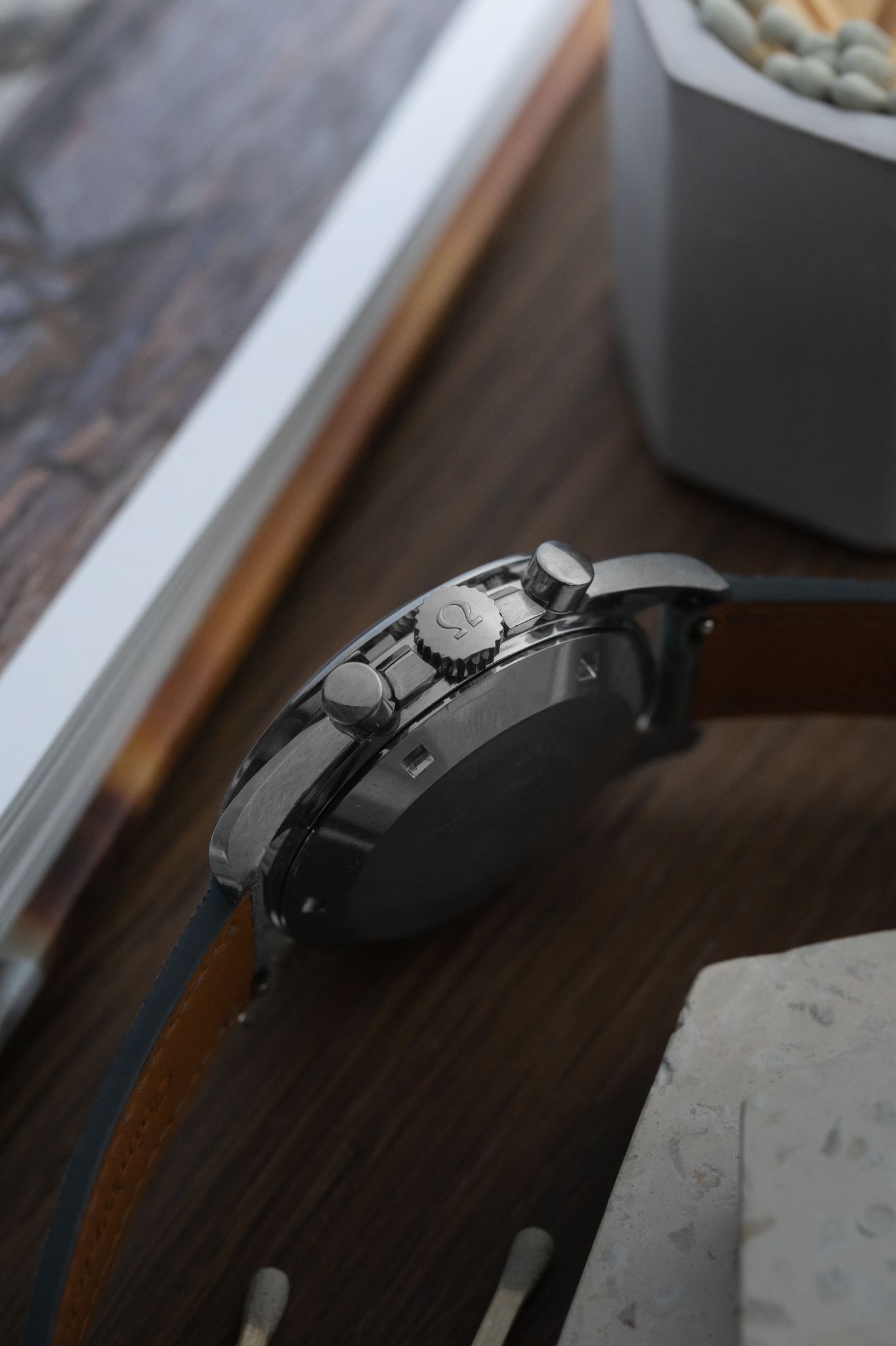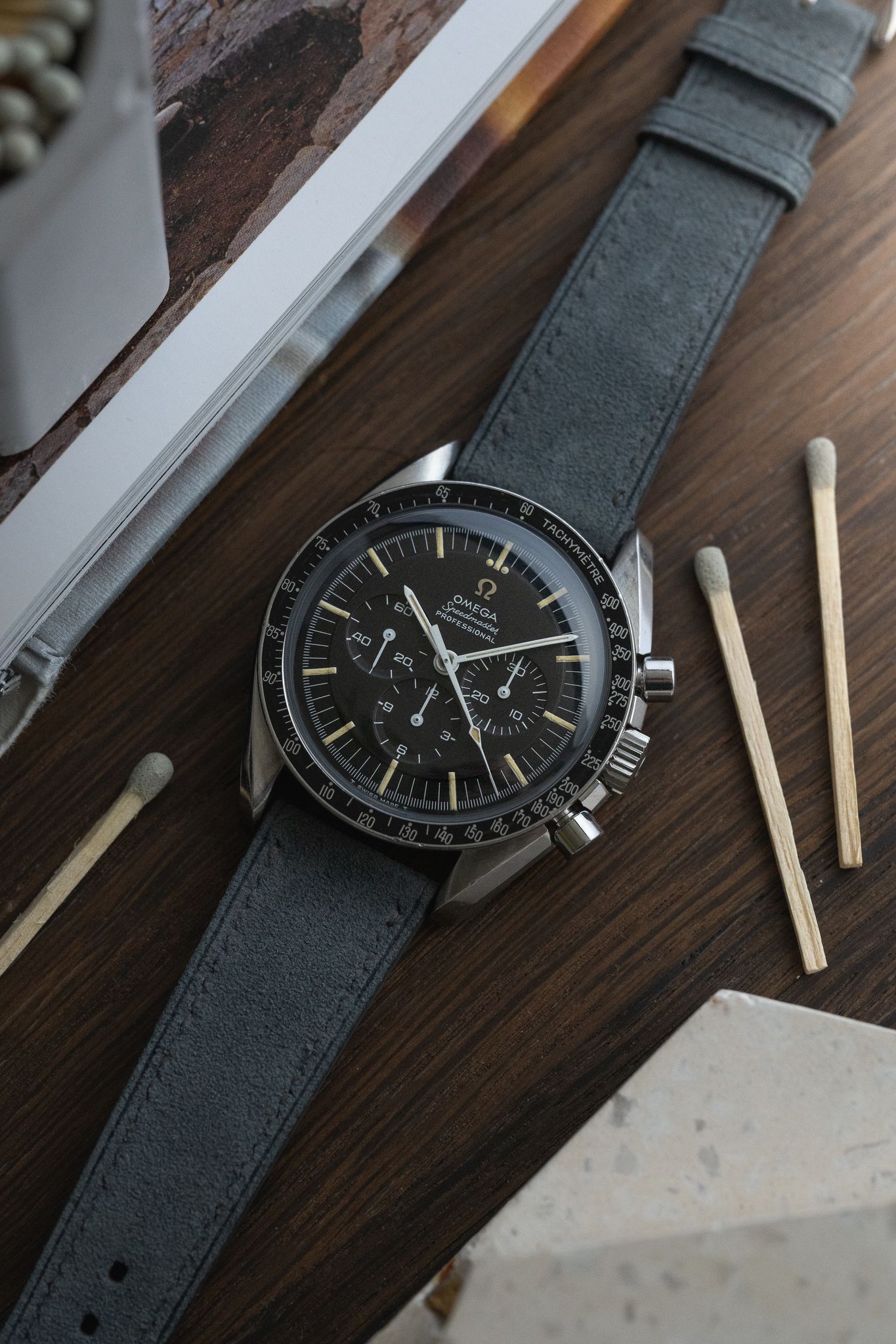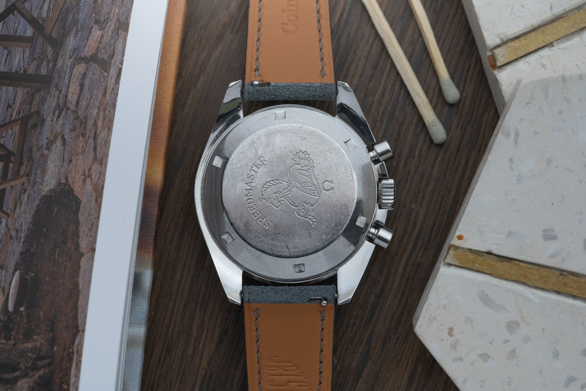 Complemented by a brand new custom leather band, this Speedmaster seamlessly blends vintage allure with contemporary style, making it a versatile choice for any occasion. Owning this Omega Speedmaster is not just about keeping time; it's about holding a piece of history on your wrist, a conversation starter that speaks volumes of elegance and timeless style.
