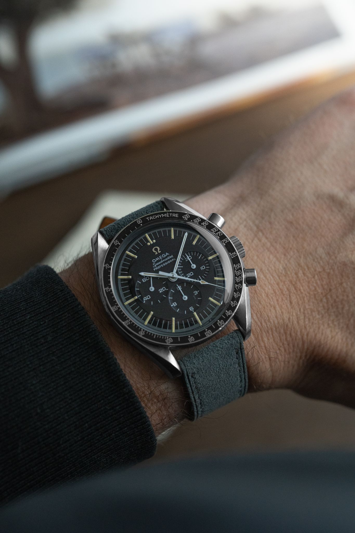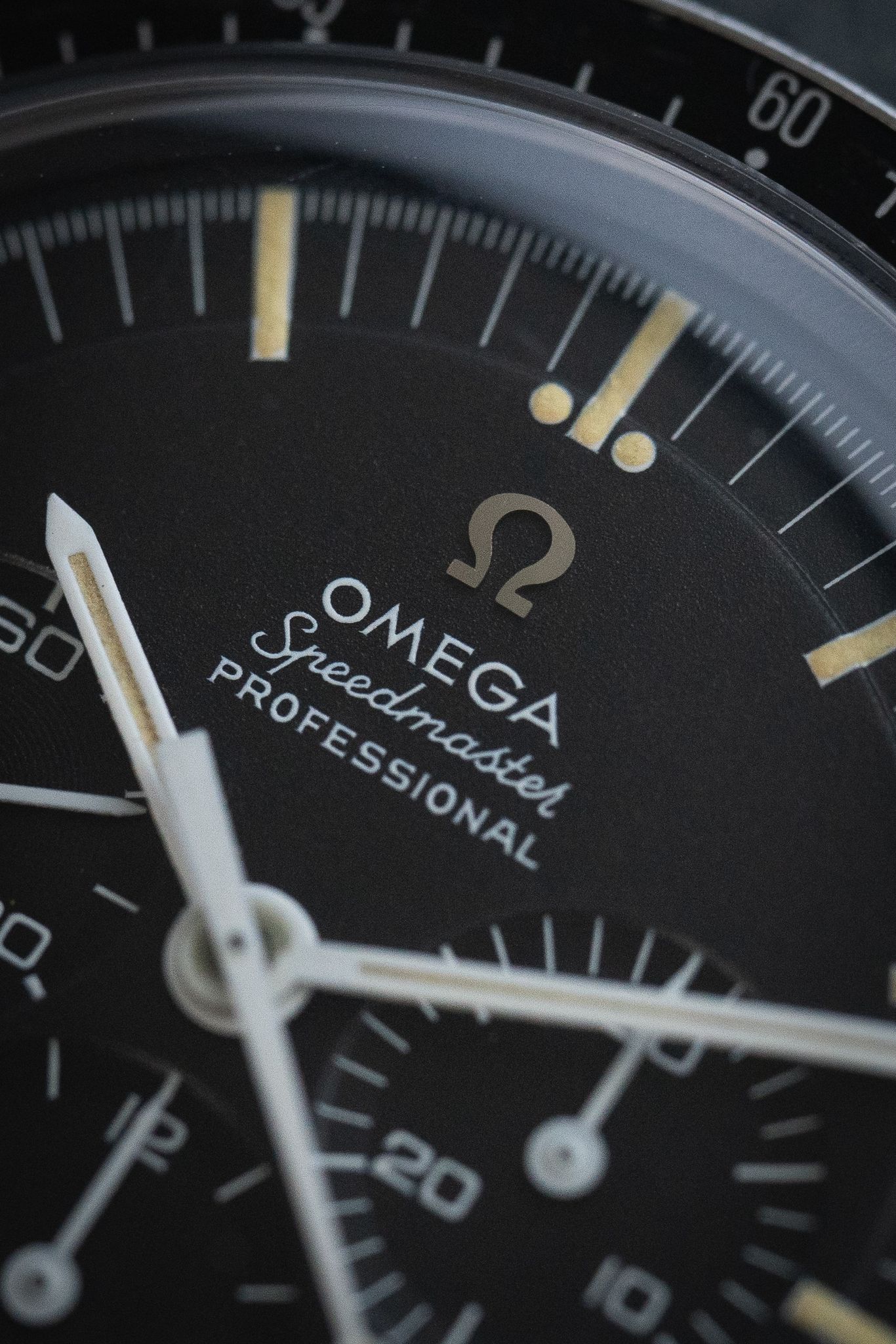 Dial/Hands: Original Omega black dial in very attractive condition with nice even patina forming on all of the markers. Some lume natural loss as expected with a vintage speedmaster though overall extremely eye please with no distractions in the fields of the dial. Hands are as attractive and original, showing honest signs of aging.