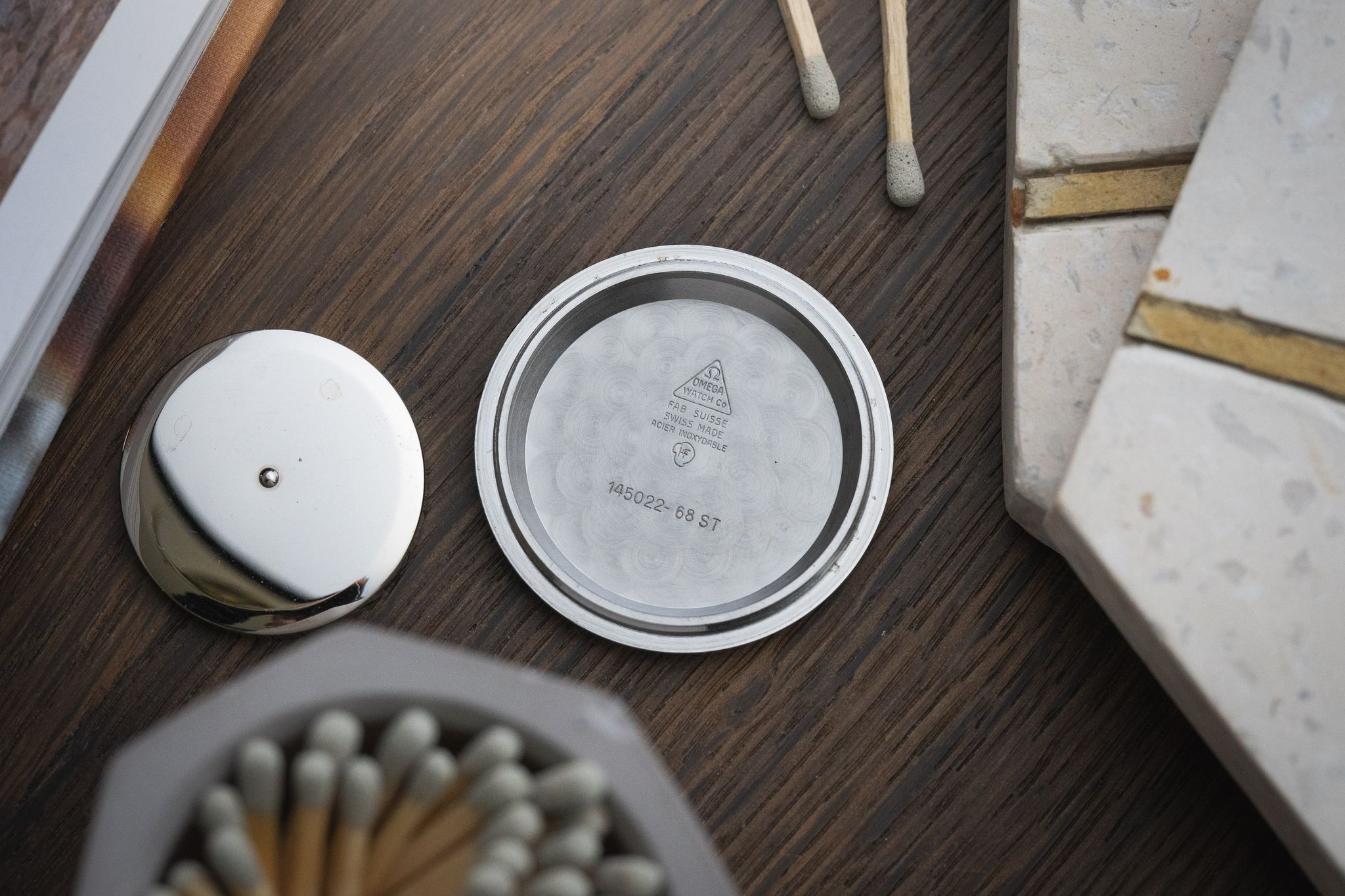 Crystal: Omega Acrylic free of any marks or scuffs. Original Omega symbol in the middle of the acrylic
