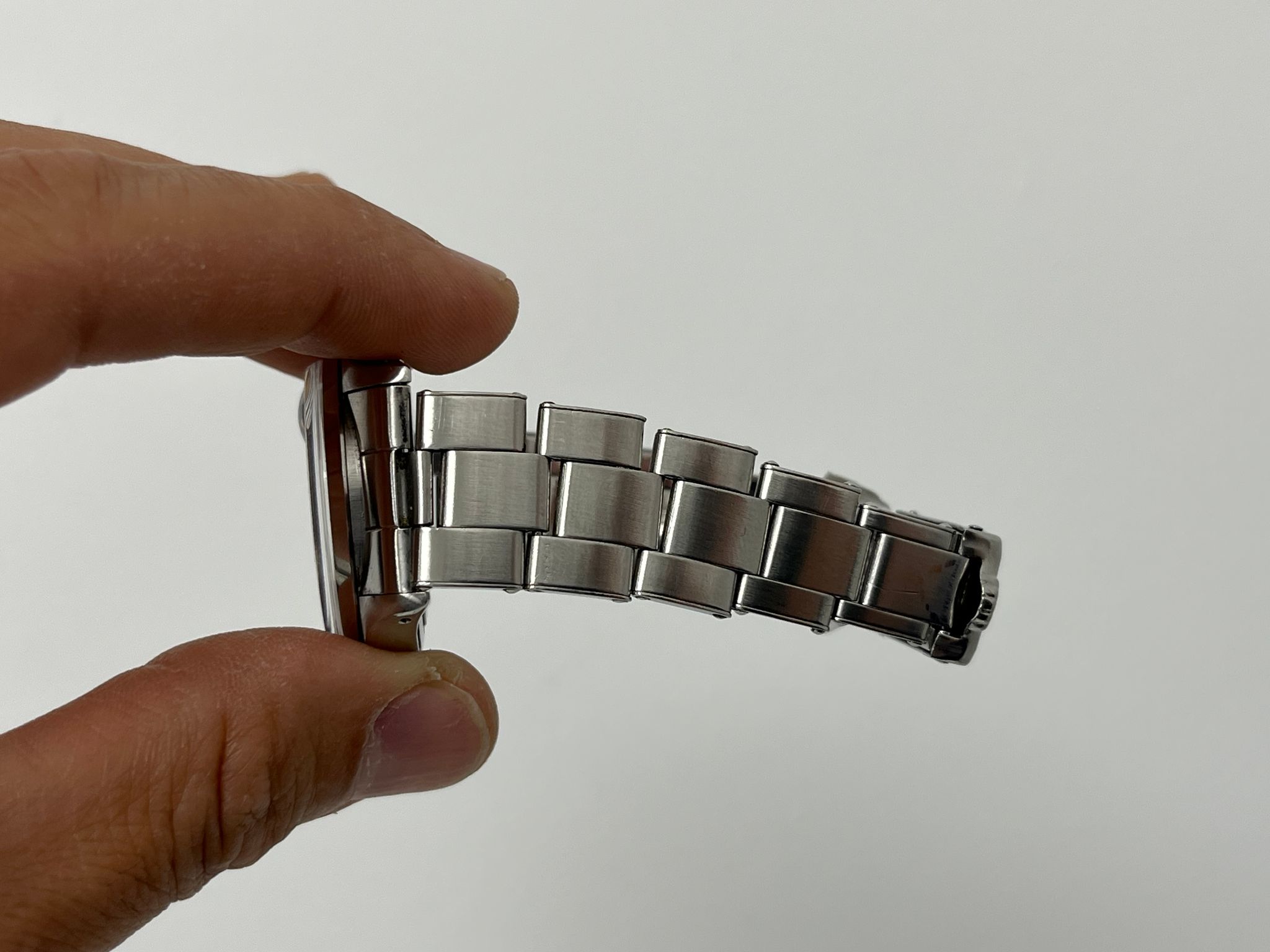 This example comes to us with a beautiful Tropical Salmon toned dial in excellent condition. The case is thick with even lugs throughout. The watch comes mounted on its original 7205 Rivet bracelet with 11 total links and no stretch. Just a charming example with a stunning look!