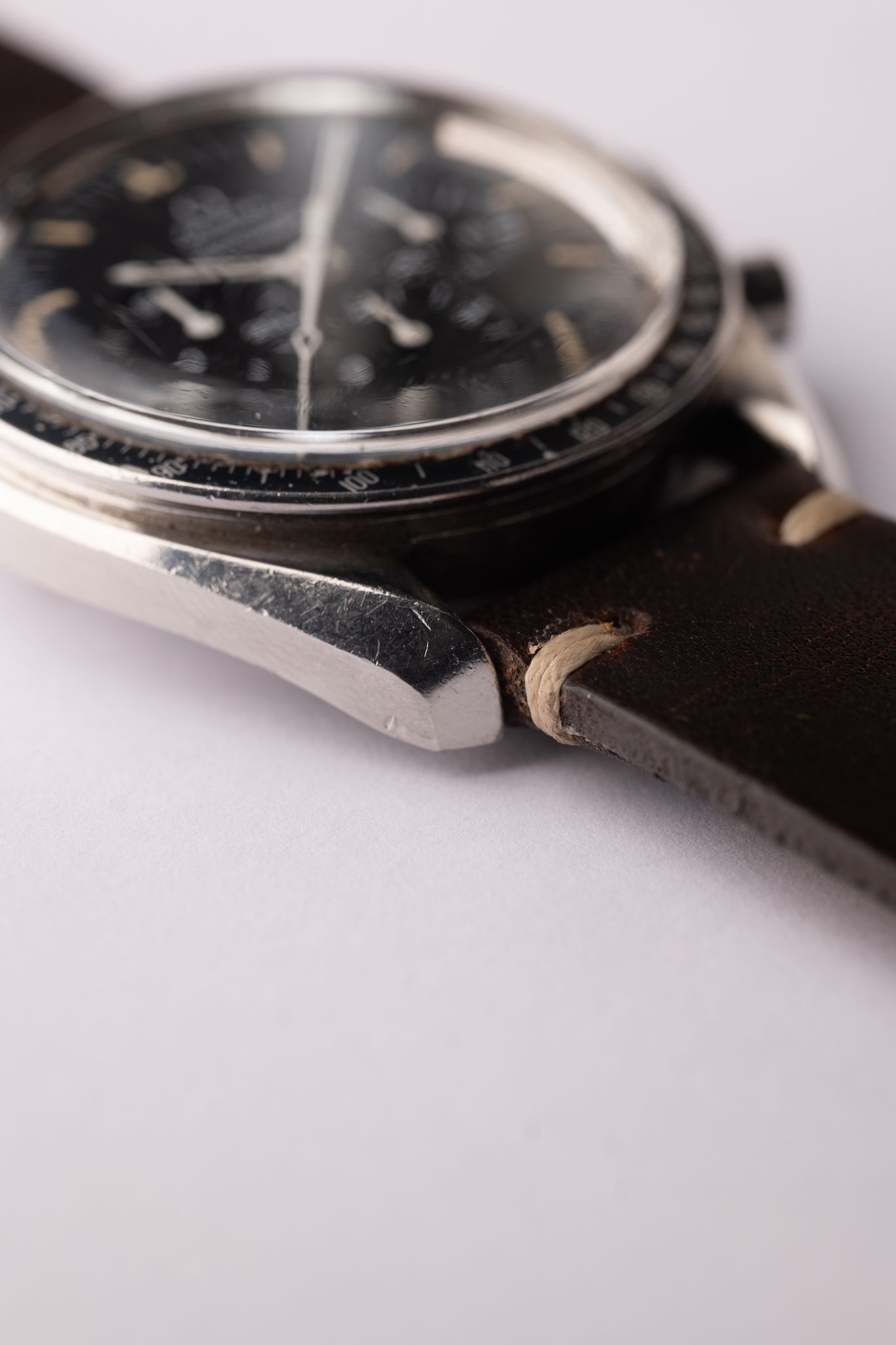 Description: The 145.022-68 Speedmaster was introduced at the end of 1968 and was only produced until the end of 1969. This Speedmaster is considered a transitional piece due to it being the first speedmaster to house the caliber 861, replacing the caliber 321. But with the updated movement it still features a very similar dial from its previous references. Now coming to this watch in particular its showing great overall consistency with patina across the dial with very warm lume markers which compliments the matte black dial. The case is in excellent condition appearing unpolished.