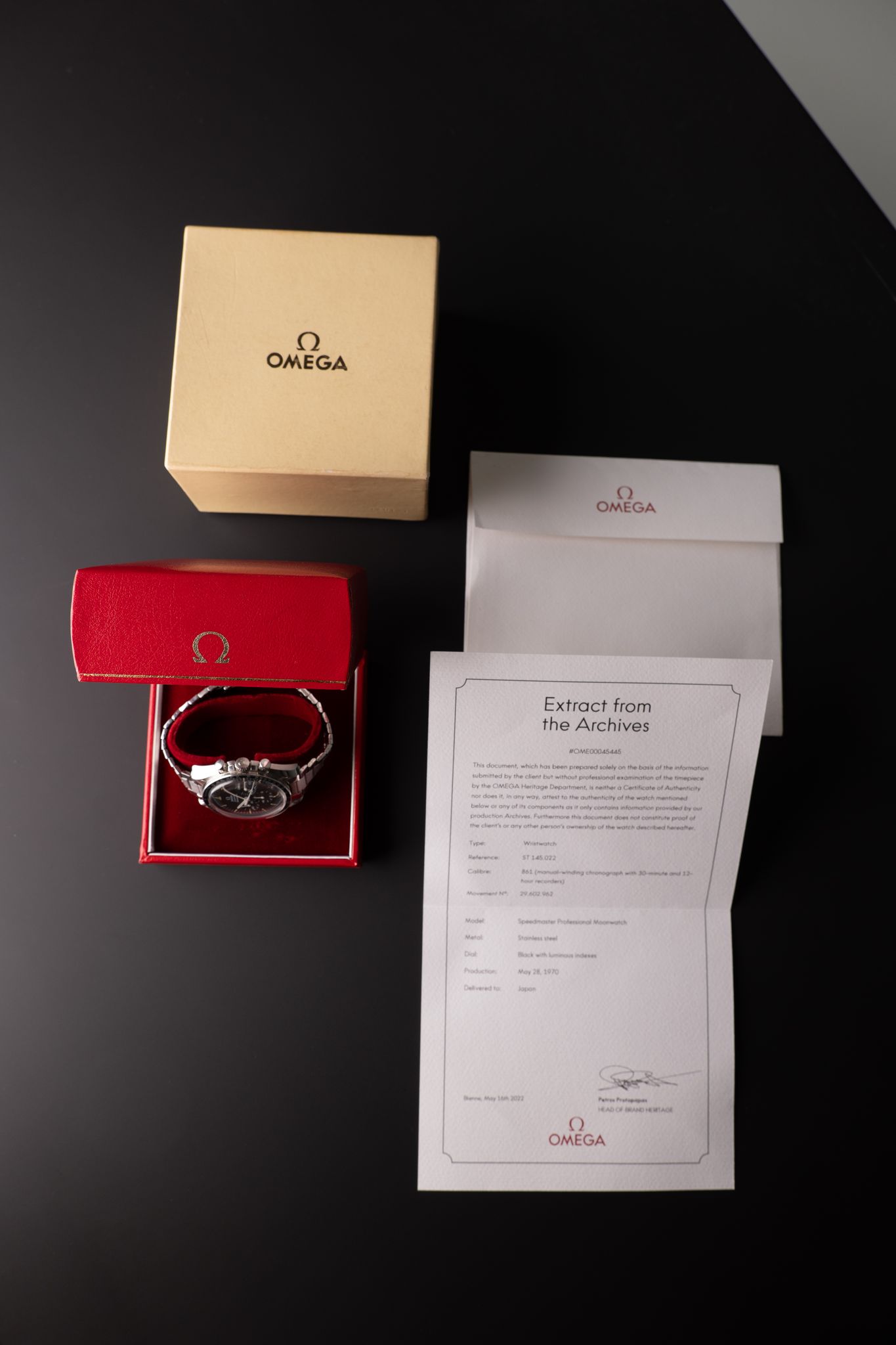 Description: This 145.022-69 tropical pre-moon Speedmaster should be in every collection. The painted stepped logo has aged overtime to a beautiful coco brown gradient. There are “tropical dials” and there are tropical dials. Comes on an excellent 1039 bracelet and with extract