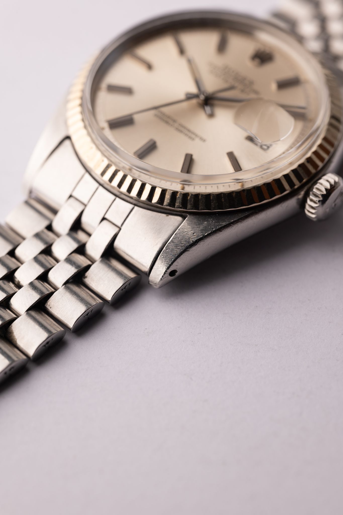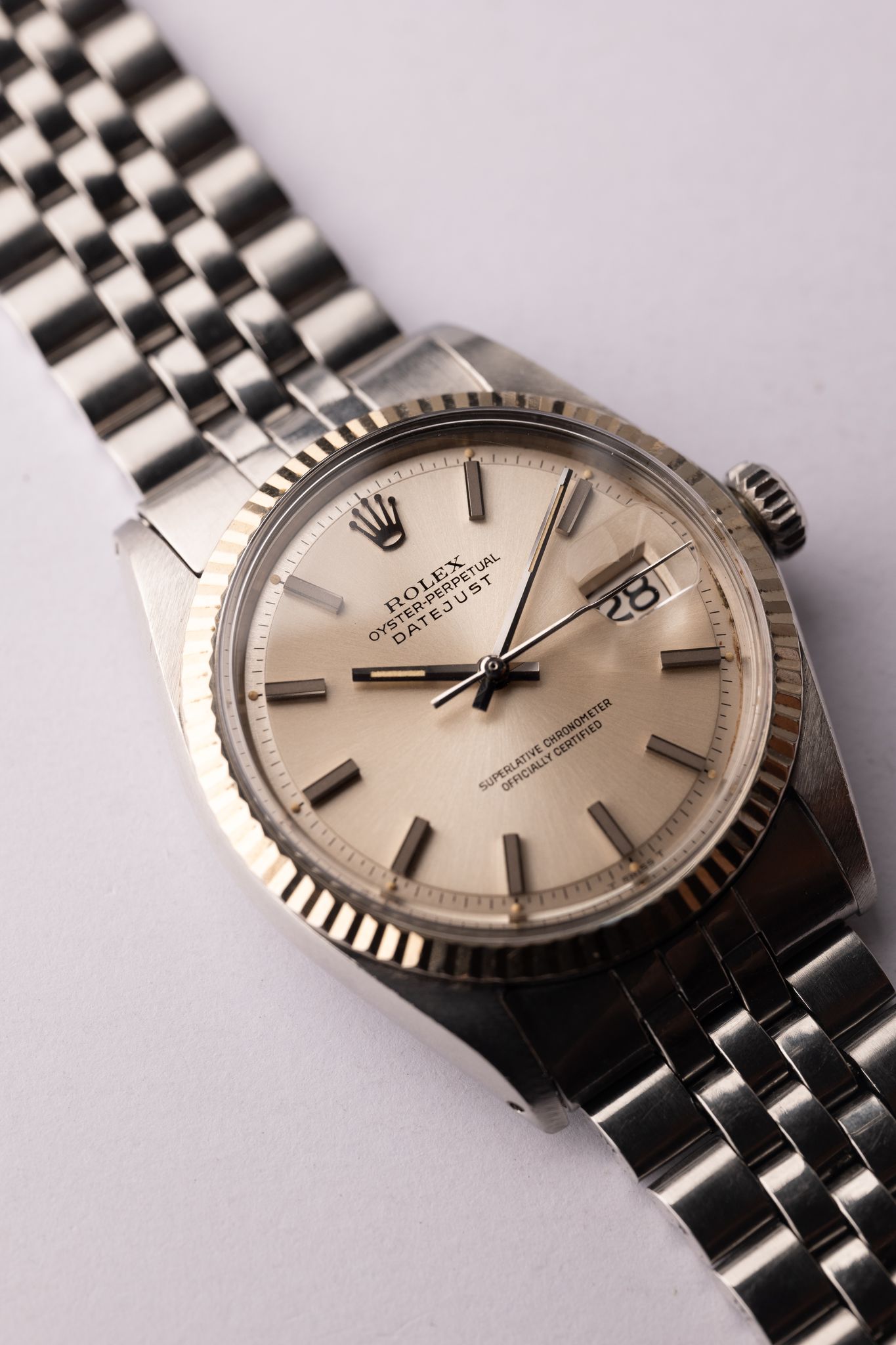Description: It does not get more classic than a 1601 Silver dial Datejust. This 36mm automatic watch pairs simply with everything. The lume has aged to a beautiful golden yellow and hands match the dial in this case. Case is also a stand out amongst a sea of over polished datejust.